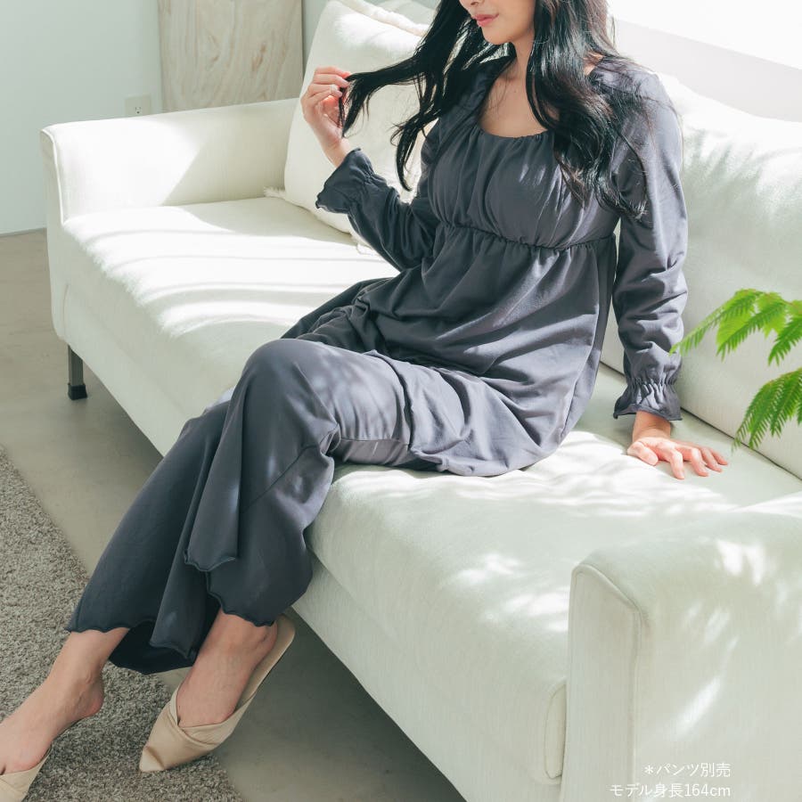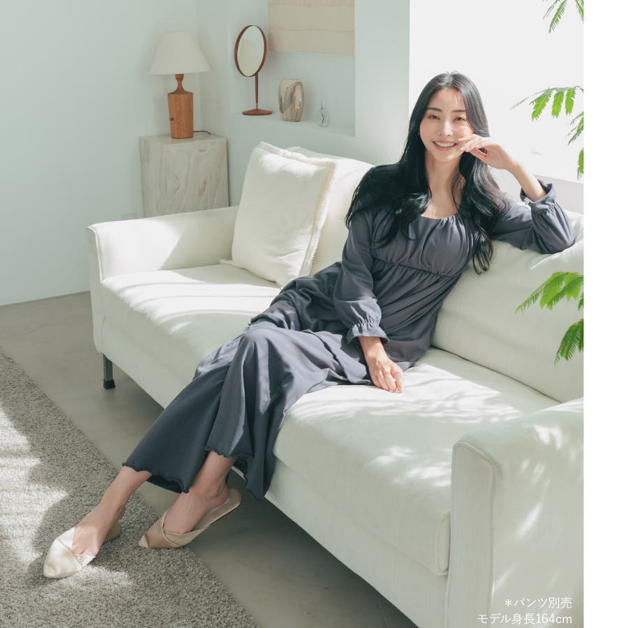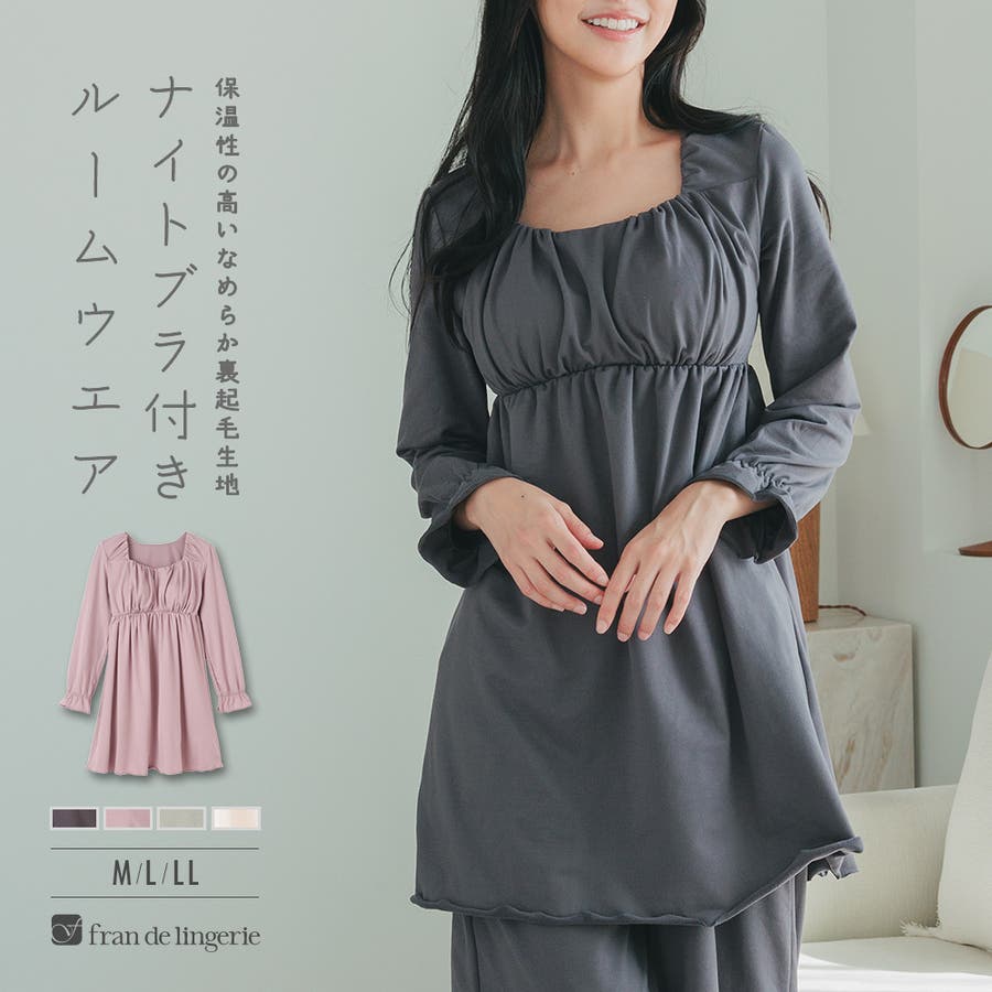 ルームウェアとナイトブラが一つになった『LuNight(ルナイト)』シリーズ。暖かく滑らかな裏起毛の生地は伸縮性が高くリラックスタイムにぴったり。ナイトブラ付きのトップスやワンピース、お揃いのボトムスが別売りなので好みの組み合わせを選べます。