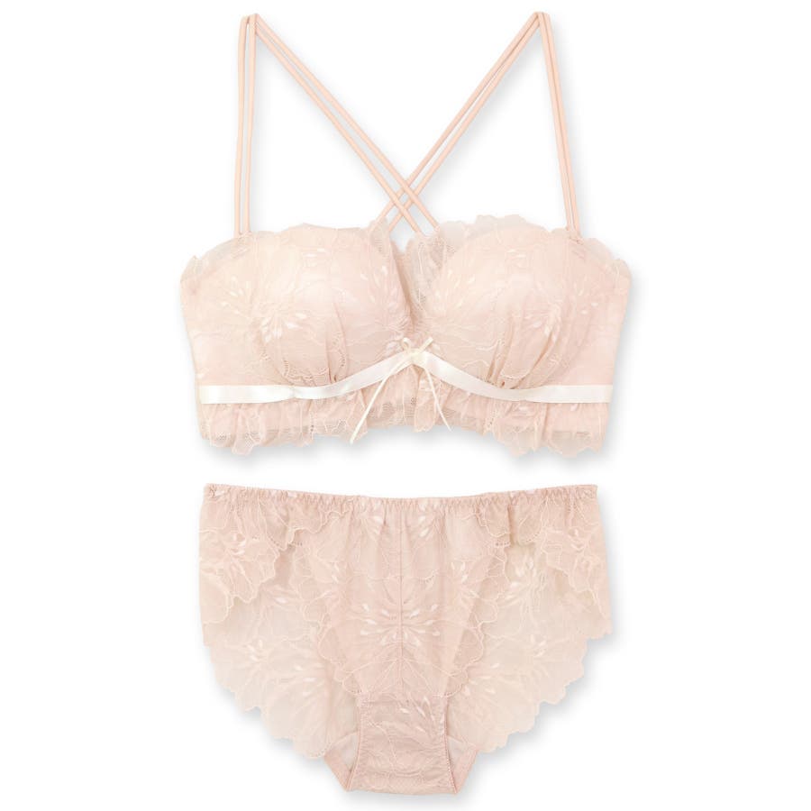 ストラップを外せばチューブ・ベアトップブラとしても使えます。しっかり目の脇高アンダーやキープベルトでずれにくい工夫アリ。柔らかワイヤーなのでワイヤーブラのキープ力を保ちつつ、ノンワイヤーのような楽ちんさを実現。パッド内臓のボリュームアップ機能付きカップは柔らかくふかふかで包まれるような付け心地も魅力。ストラップはストレートは勿論、バッククロスも可。