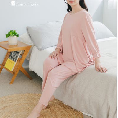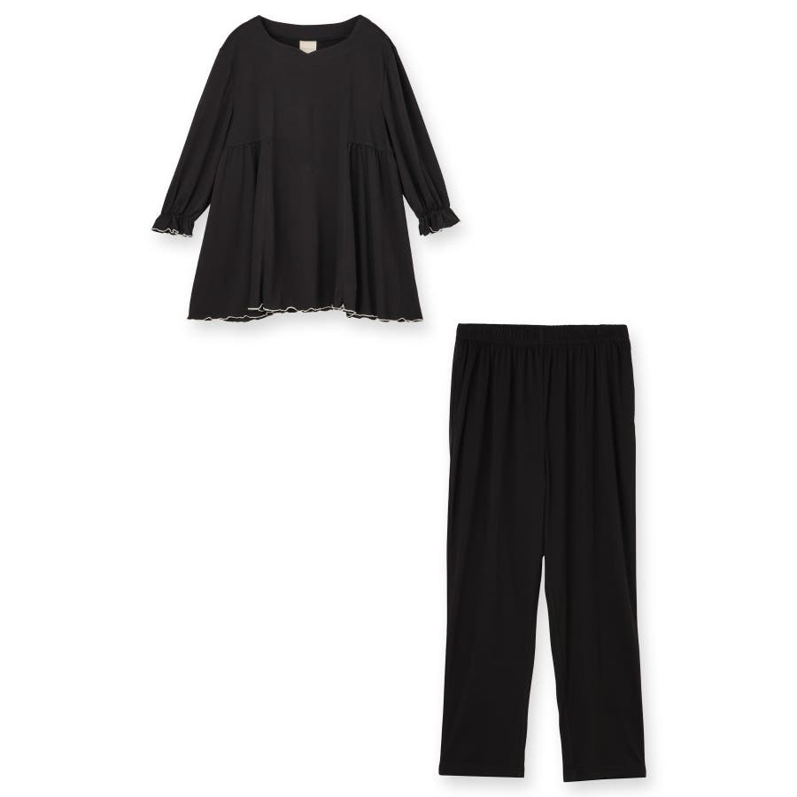 落ち感のある生地をたっぷり使った、ゆったりめの楽ちんデザインが魅力。トレンド感を保ちつつ、リラックスしたおうち時間を楽しめます。