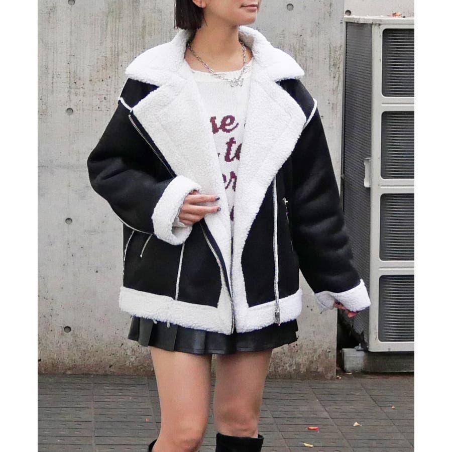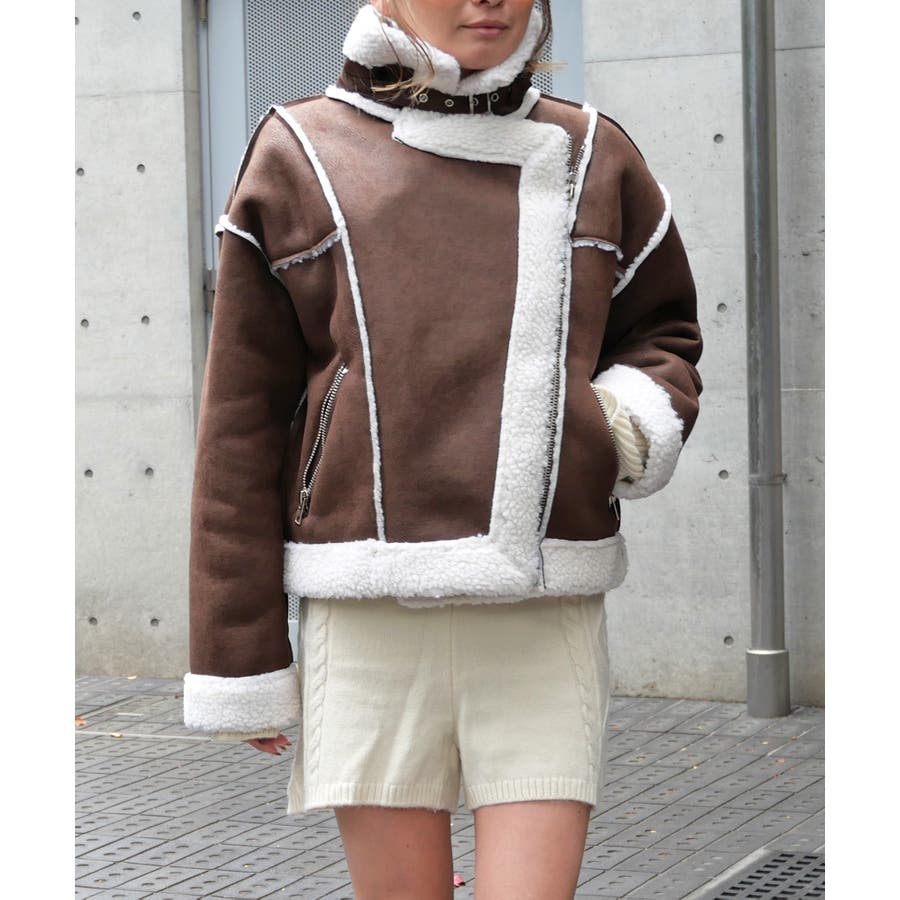 ライダースジャケットのデザインと大きな襟が、甘くなりがちなムートン素材にクールで辛口なエッセンスを加え、幅広い着こなしを楽しめます。