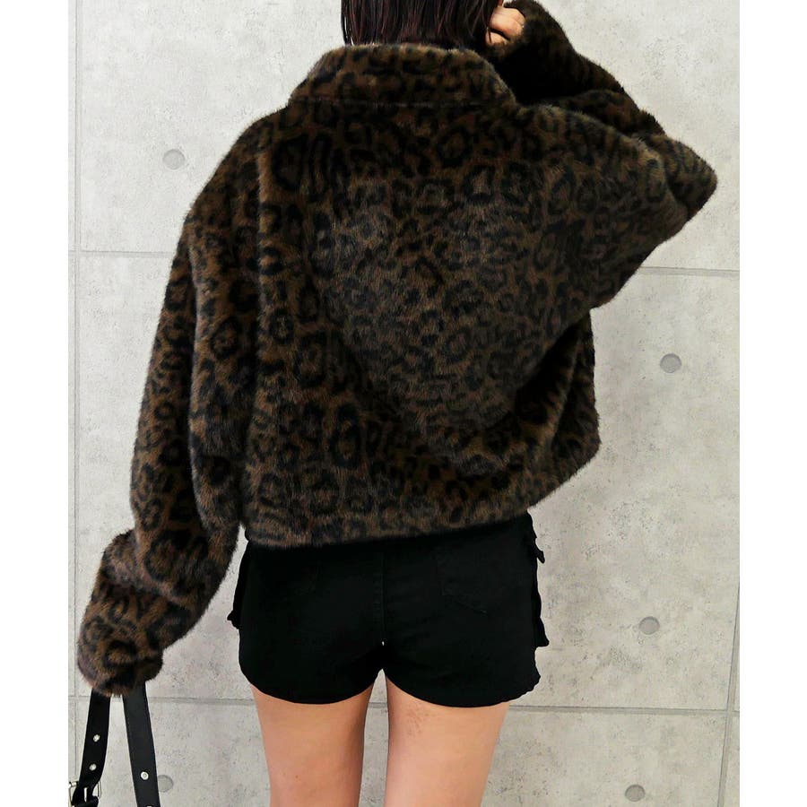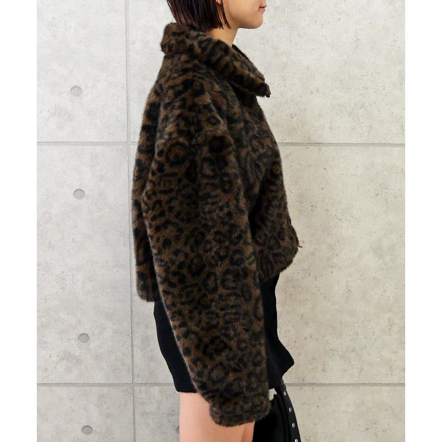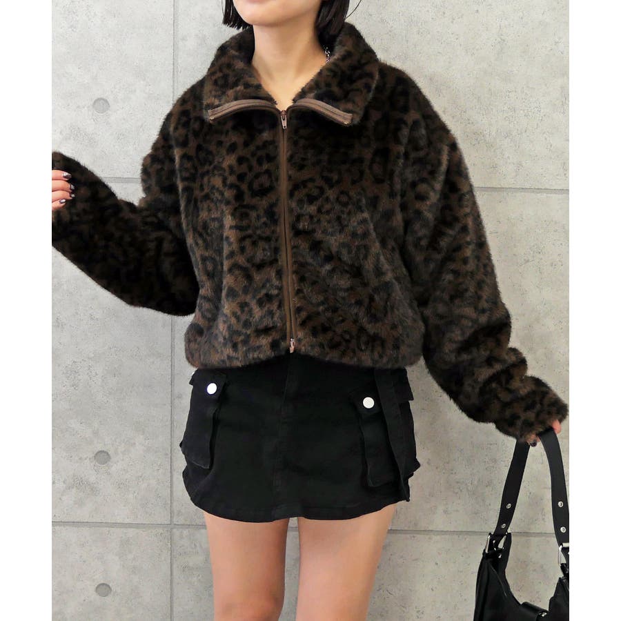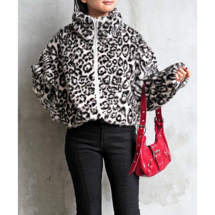 大胆なヒョウ柄がコーディネートにアクセントを加え、羽織るだけでトレンド感のある華やかなスタイルを演出。
