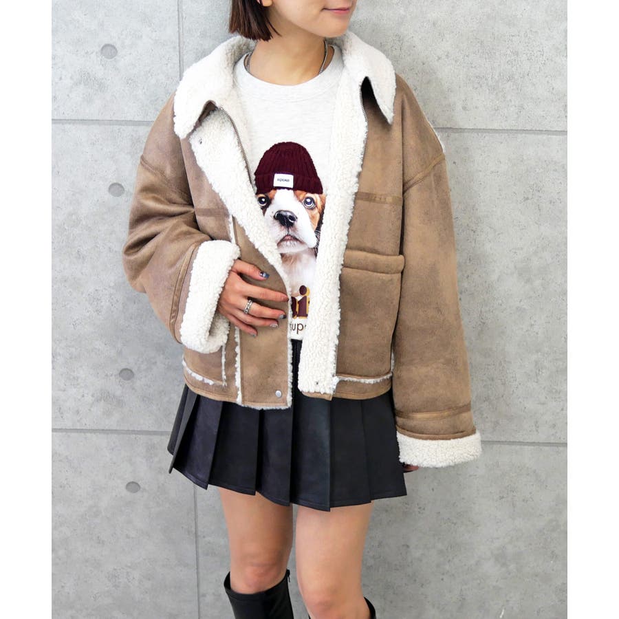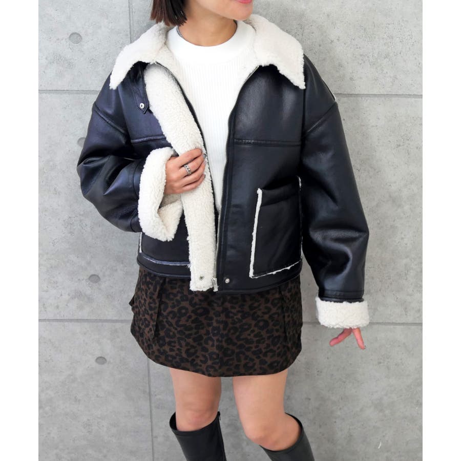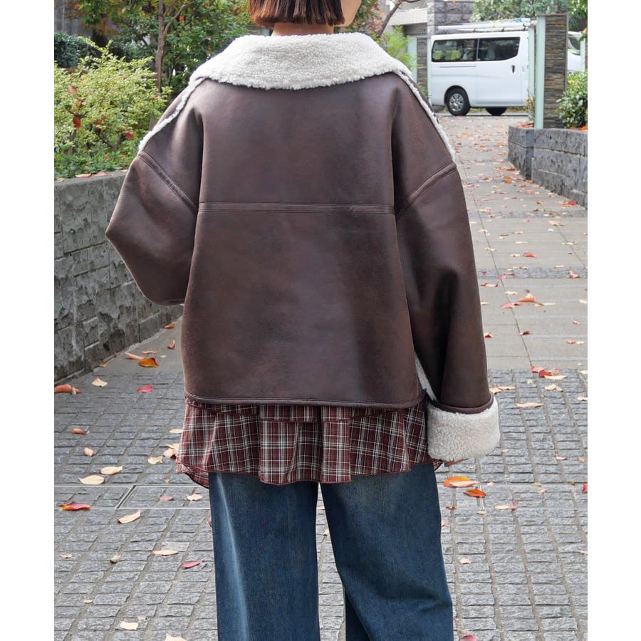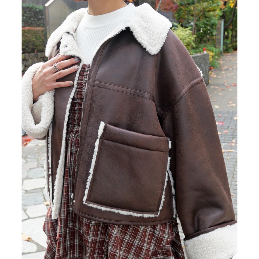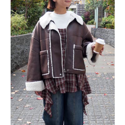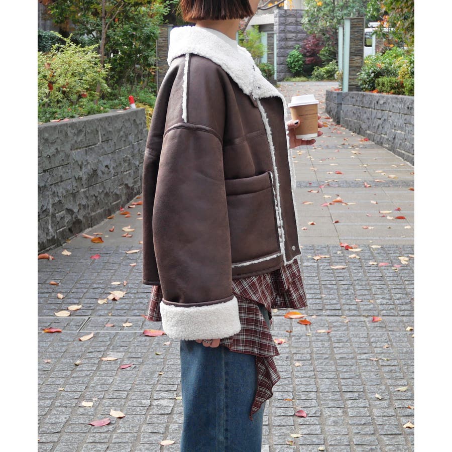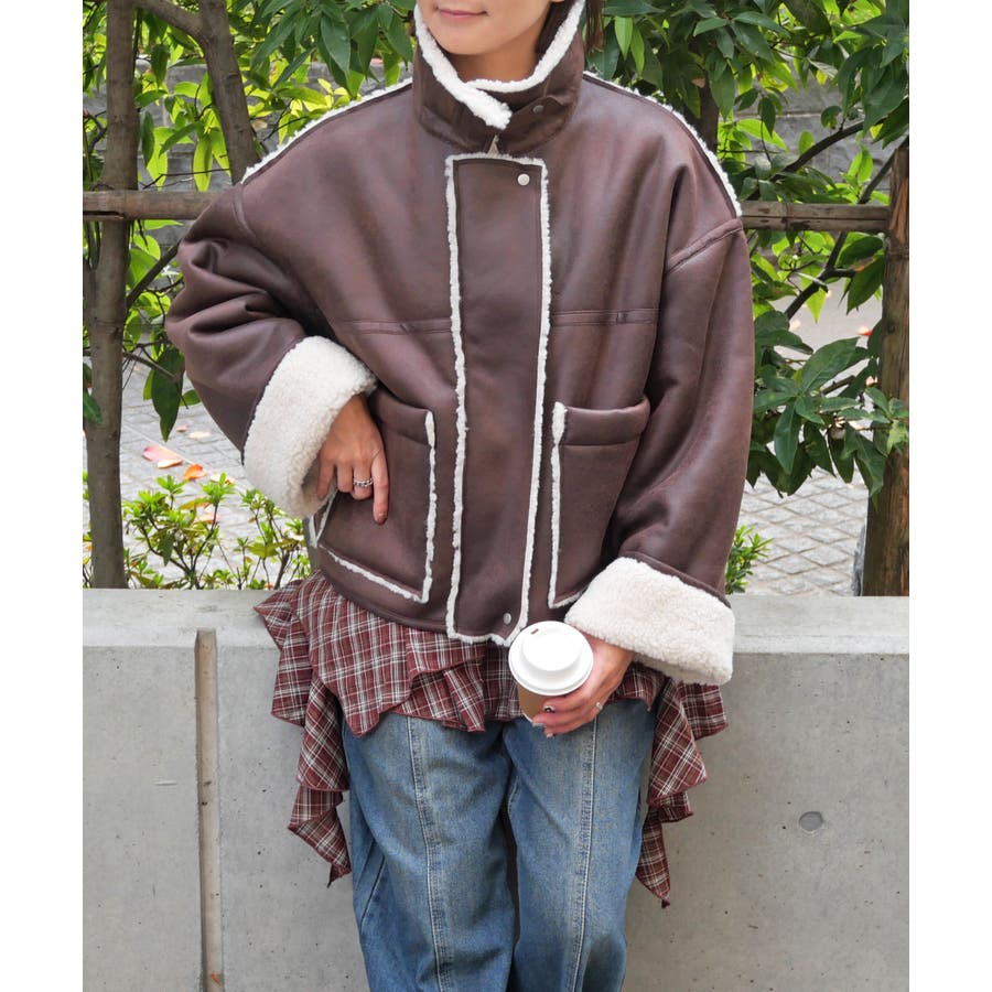 ゆったりとしたシルエットと長すぎない丈で、どんなスタイリングにも合わせやすく、スエード調生地×ボアの組み合わせがリッチでメリハリのある印象を演出します。