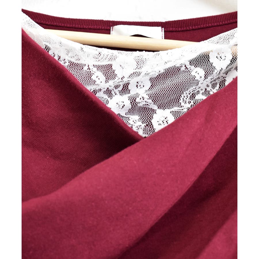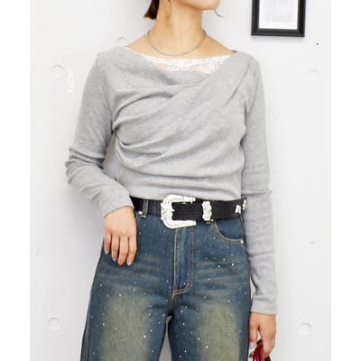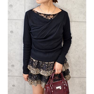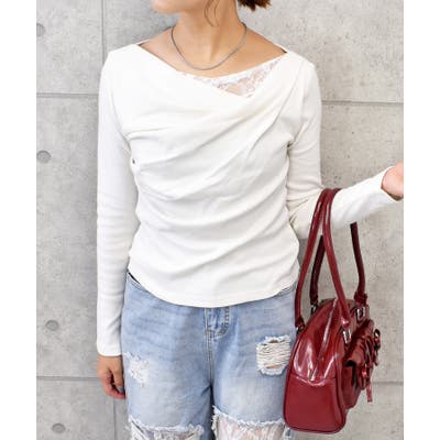 ネックラインの内側にあしらったレースが、フェミニンな抜け感でコーデをワンランク上に仕上げます。