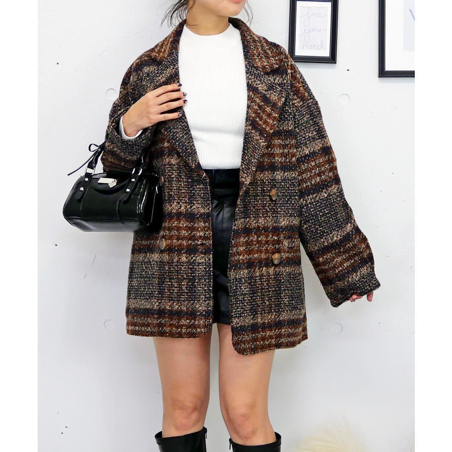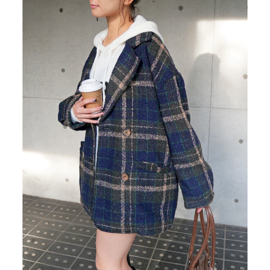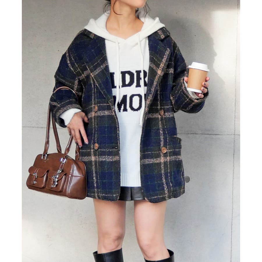 ツイード調のチェック柄が秋冬らしい温かみとクラシックな雰囲気があり、着こなしに深みと季節感をプラス。