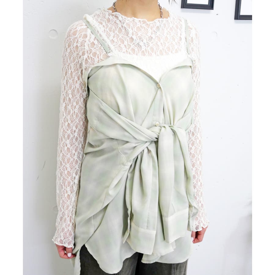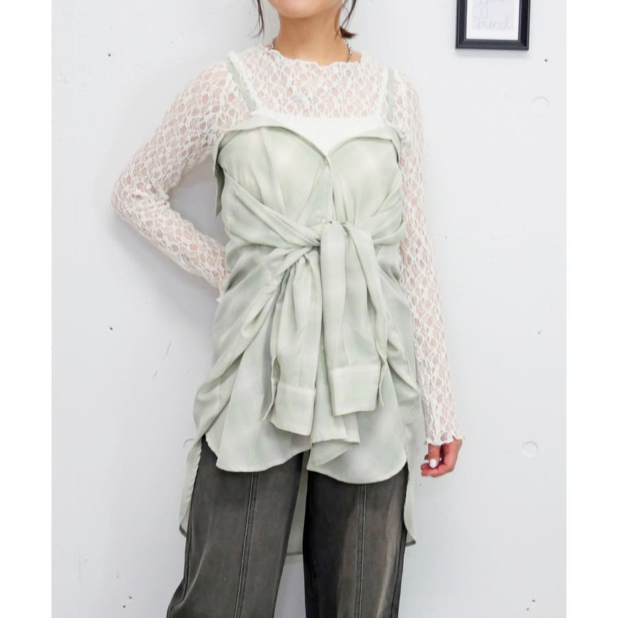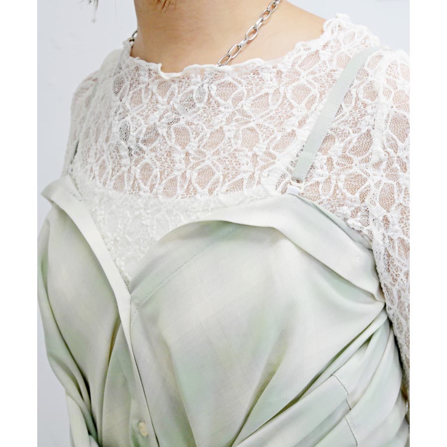 肩紐付きで、シャツとしてもビスチェとしても楽しめる2WAYデザイン。