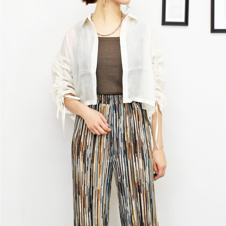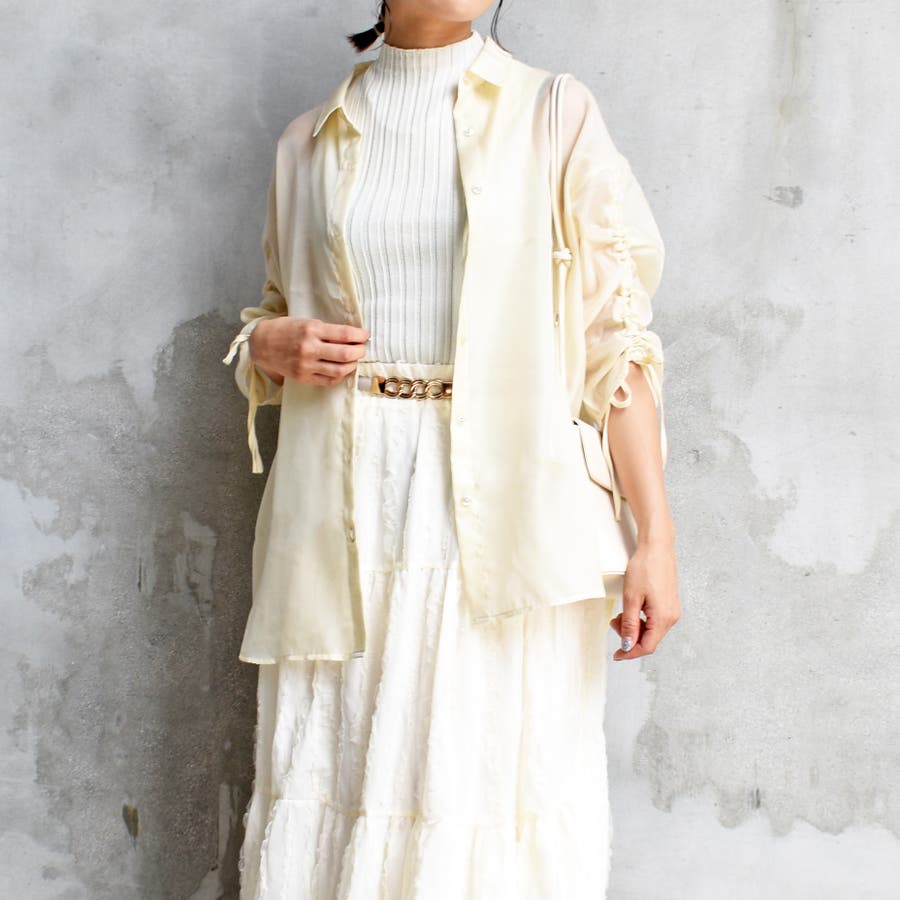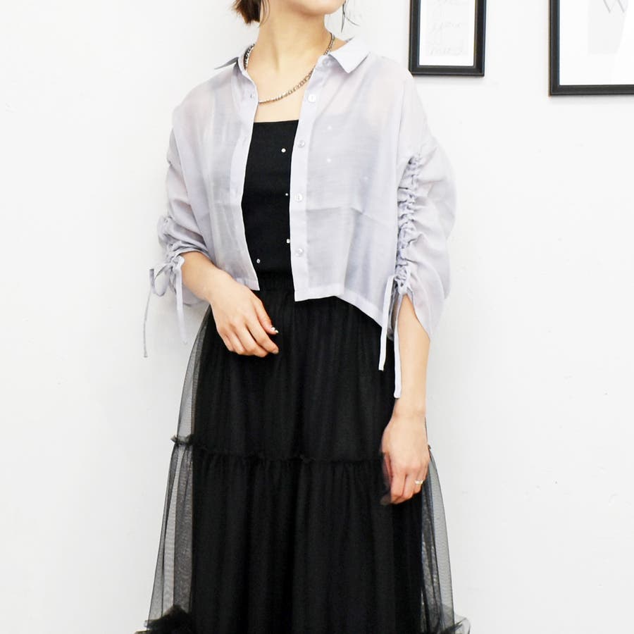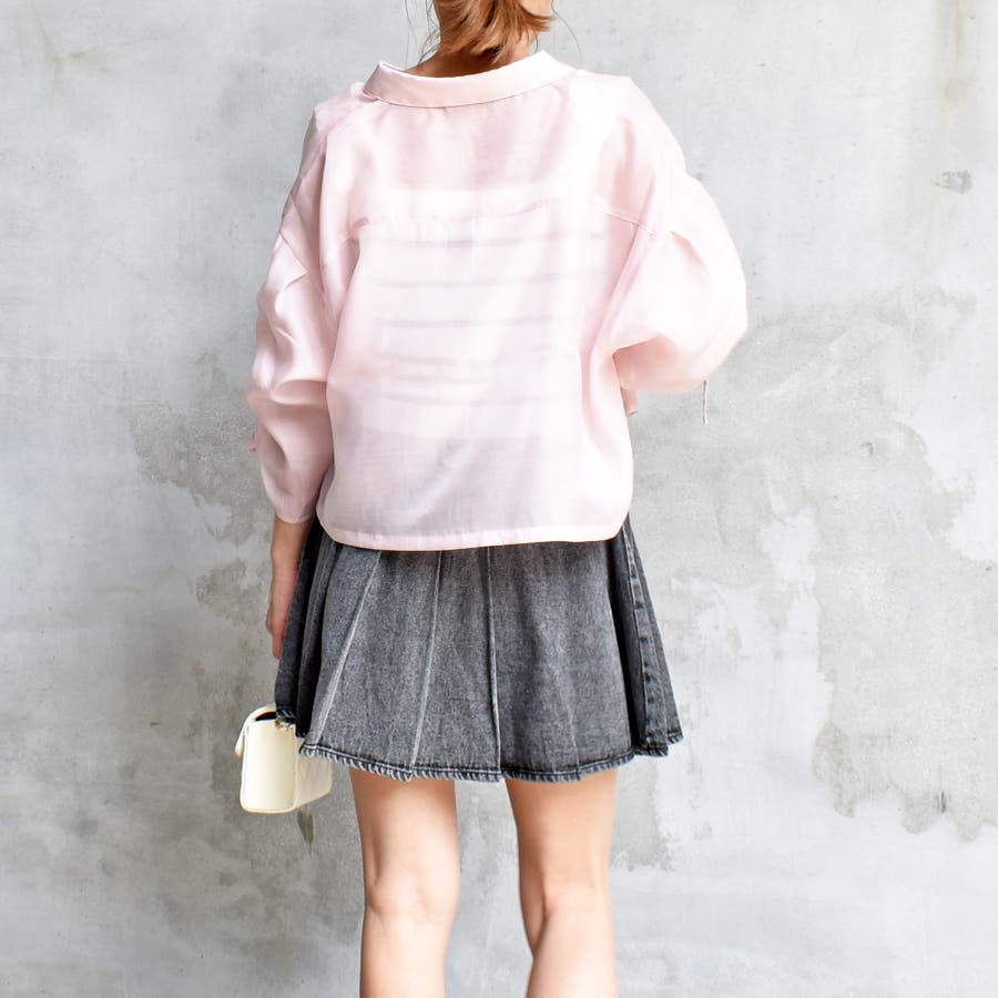 清涼感のあるシアー素材で夏のコーデに活躍する一枚です。