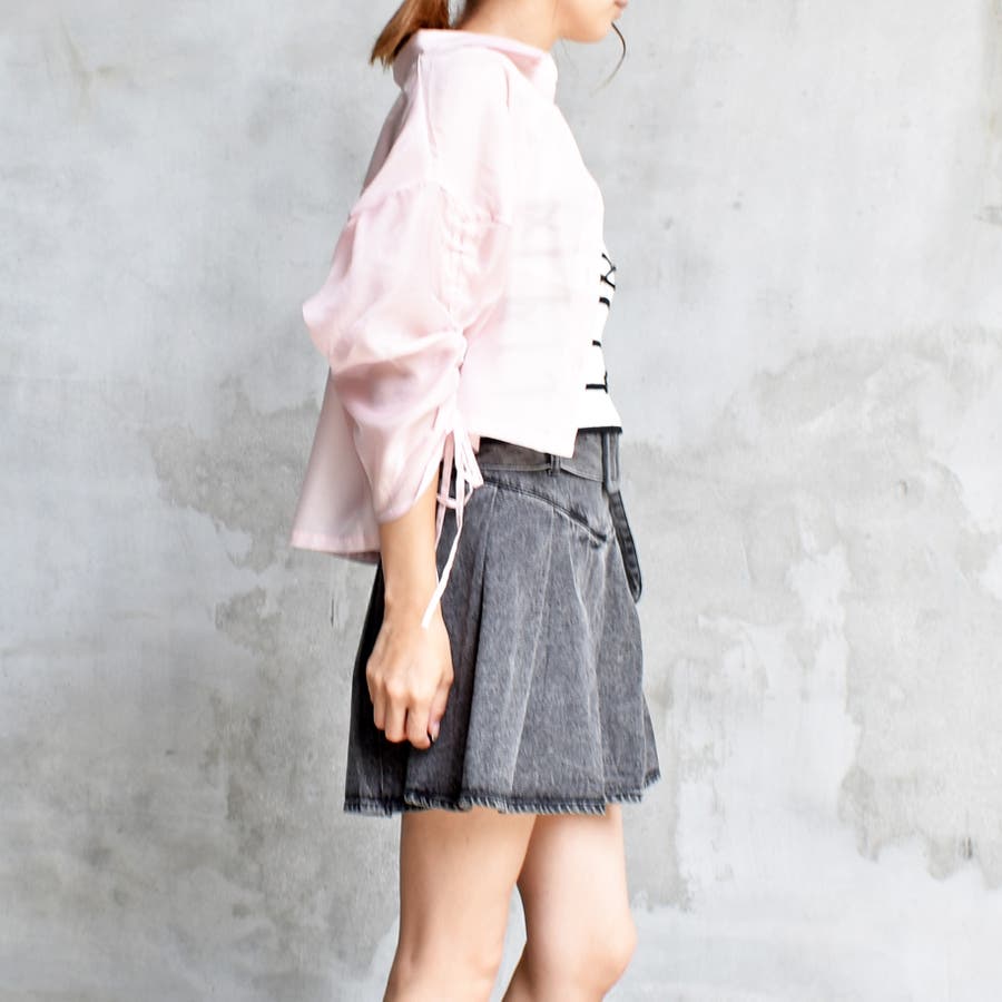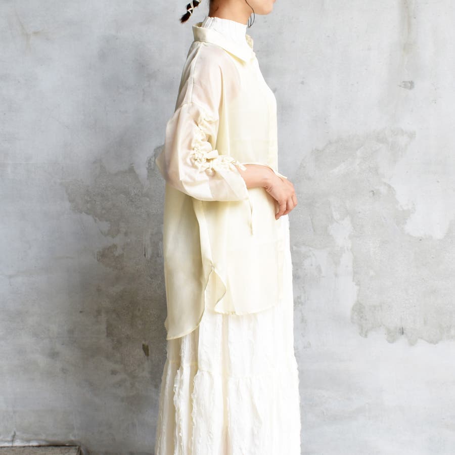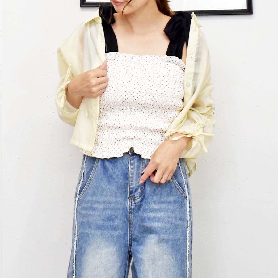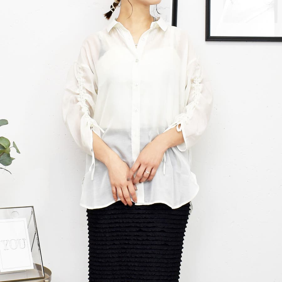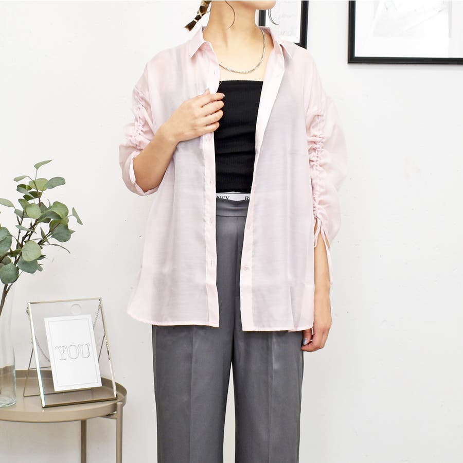 清涼感のあるシアー素材で夏のコーデに活躍する一枚です。