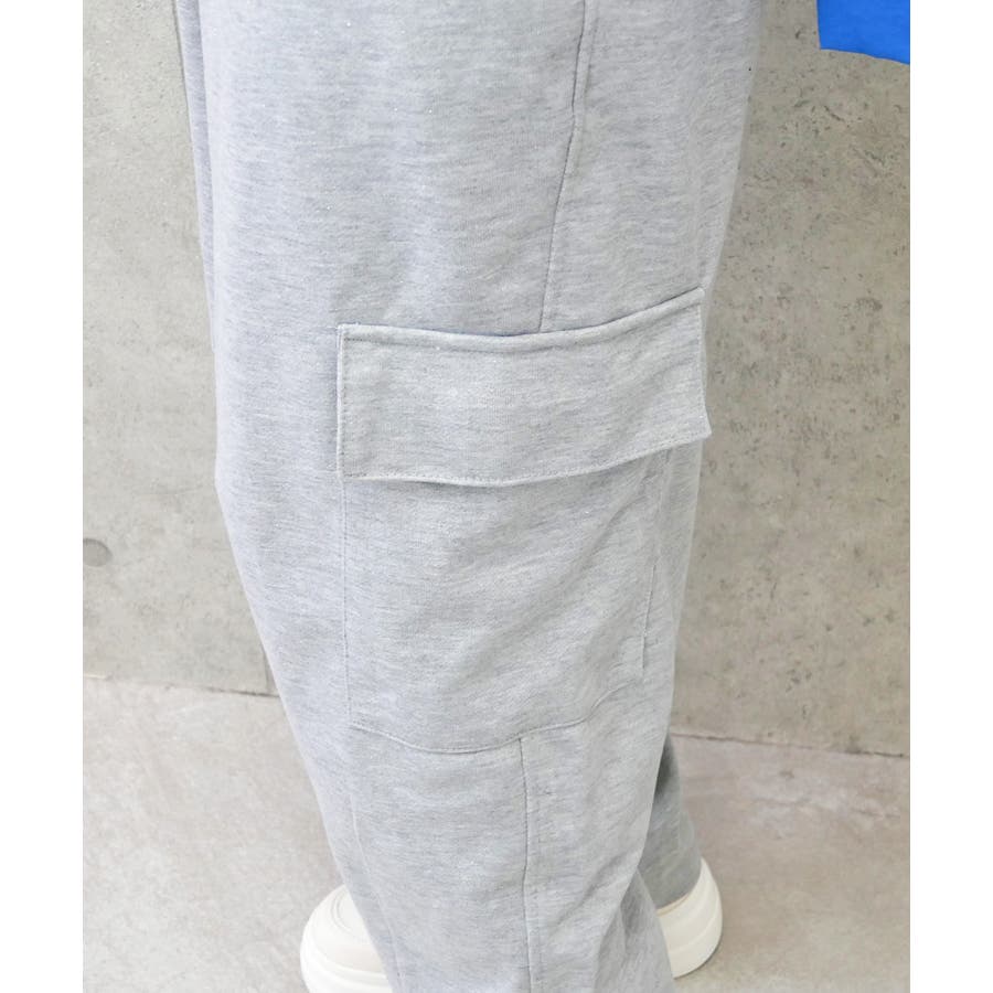 サイドのポケットがアクセントになり、シンプルなスウェットパンツよりも格段に洒落感がアップします。