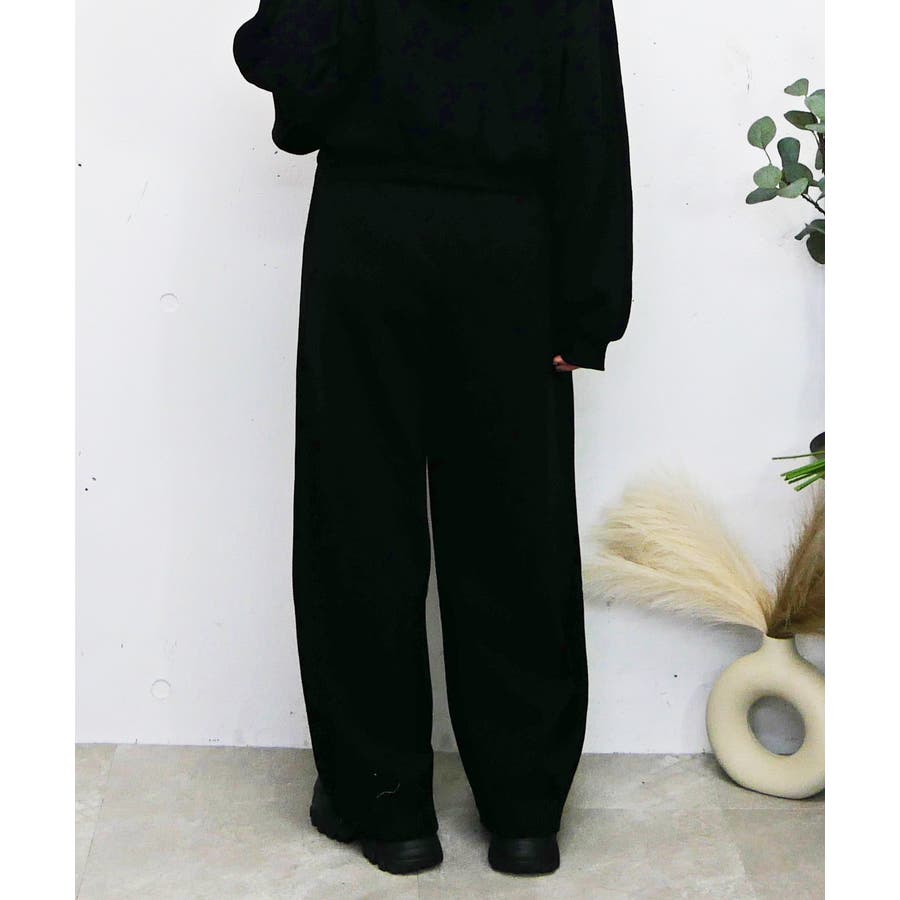 おそろいのショートパーカー(1110122011)と合わせれば、考えなくても即トレンド感ある“空港コーデ”が完成するセットアップパンツ。