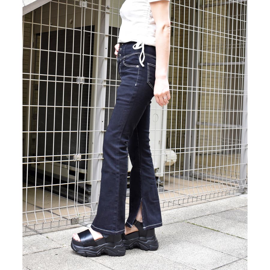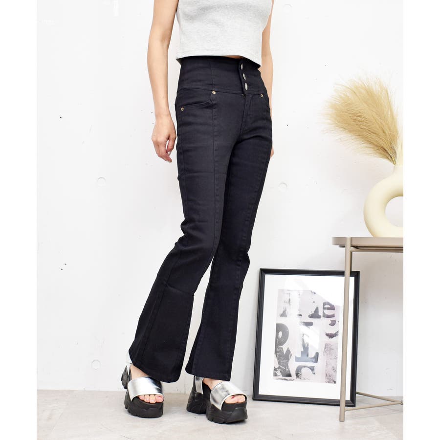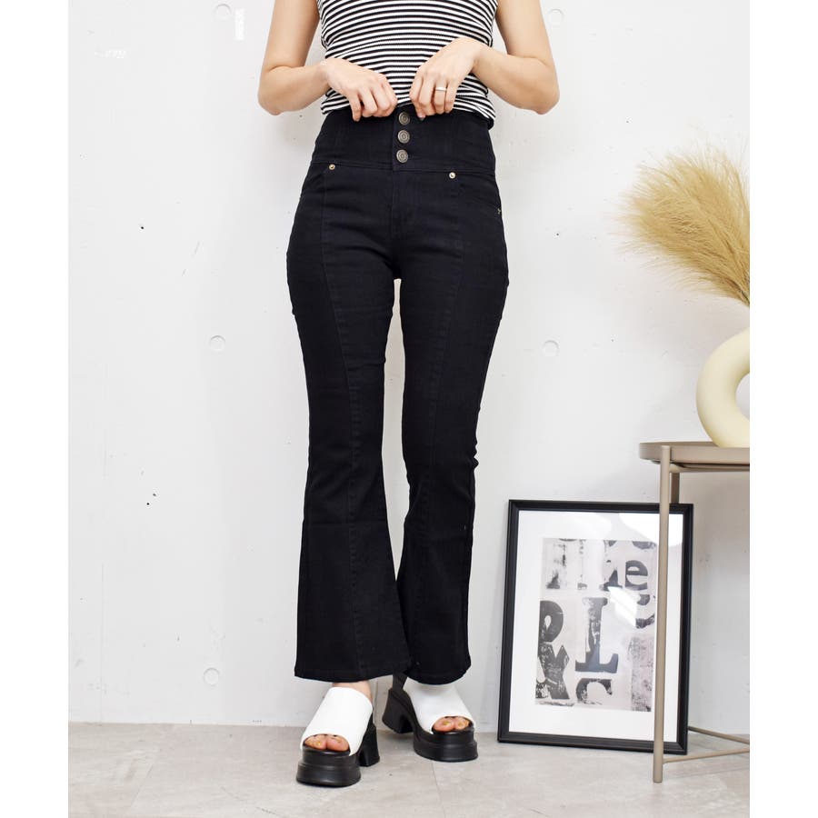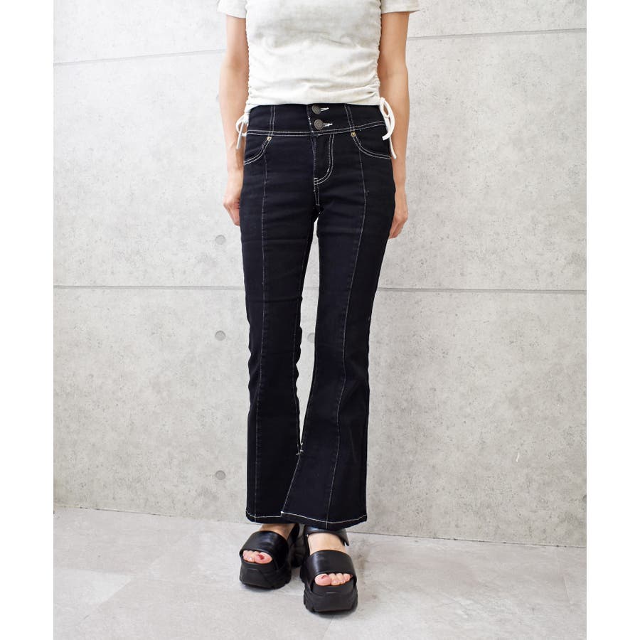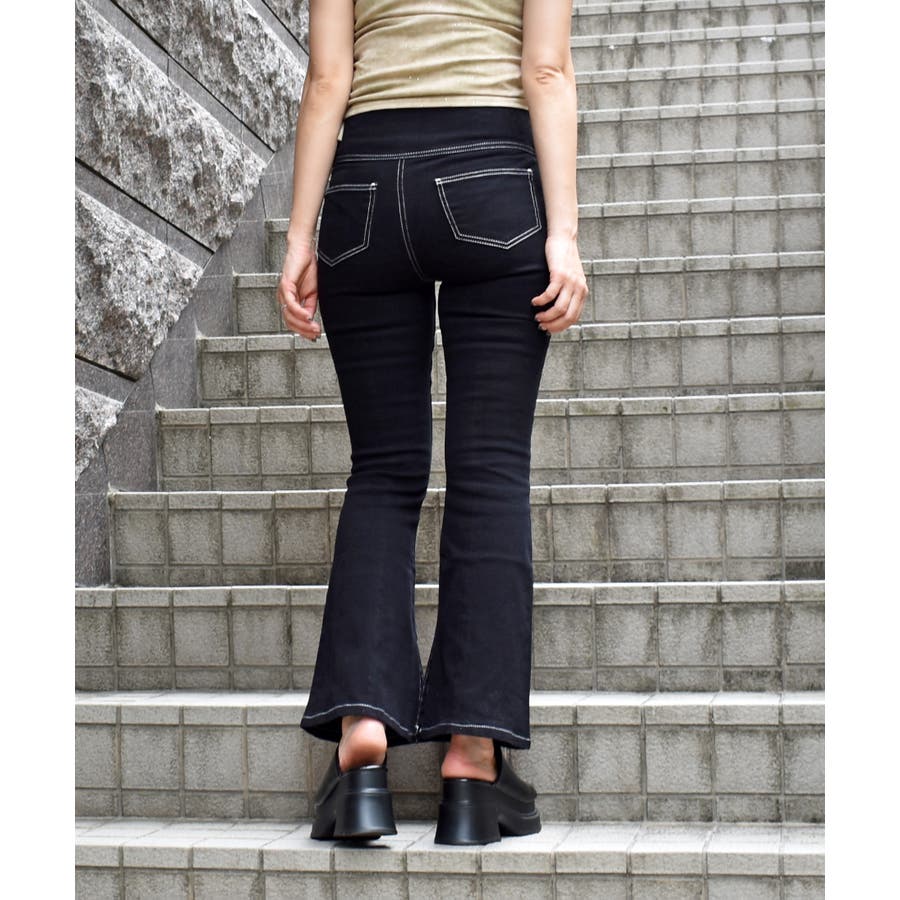 ハイウエストなのでクロップド丈のトップスとも相性ばっちりです!
