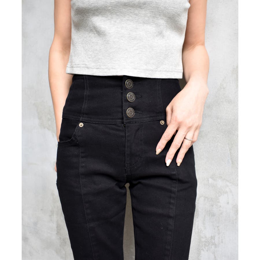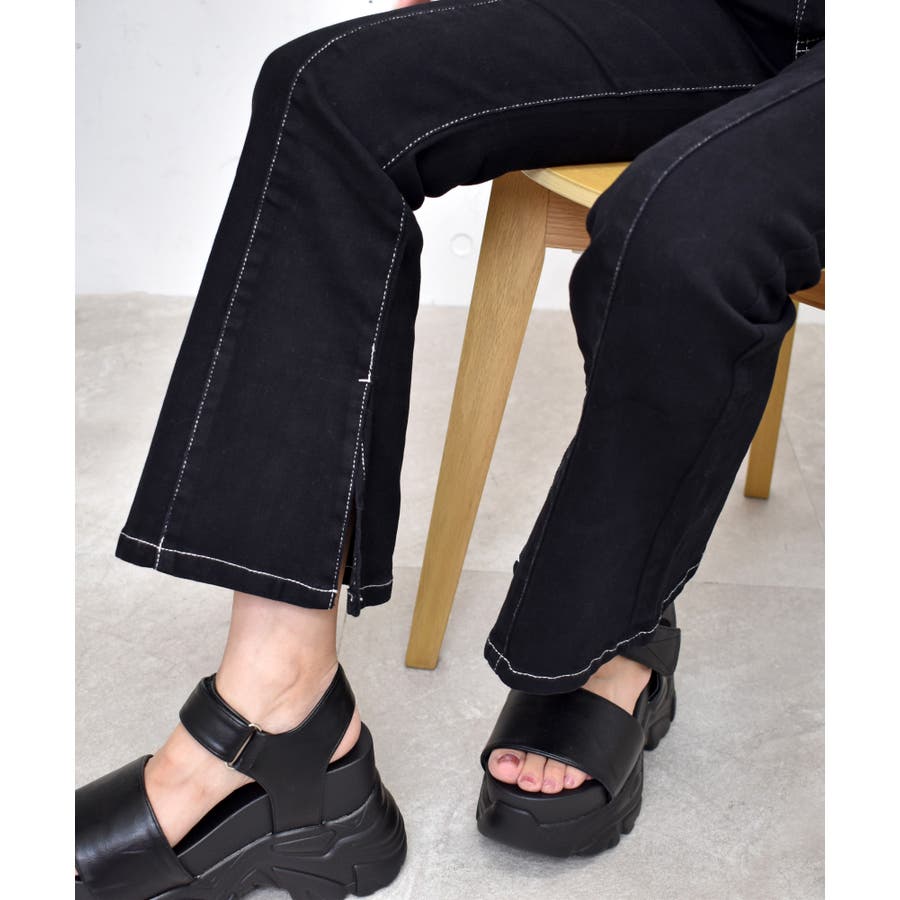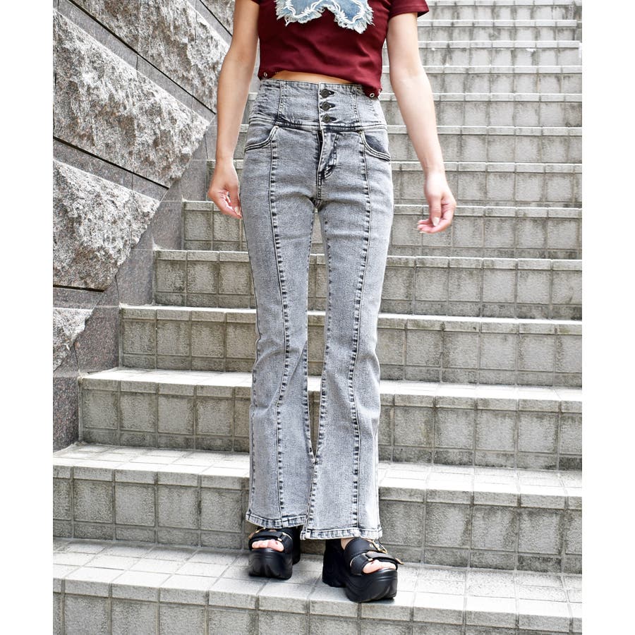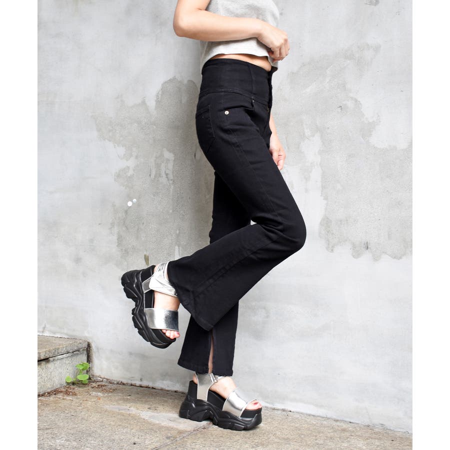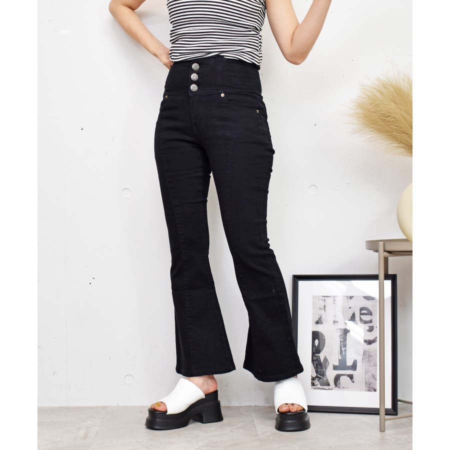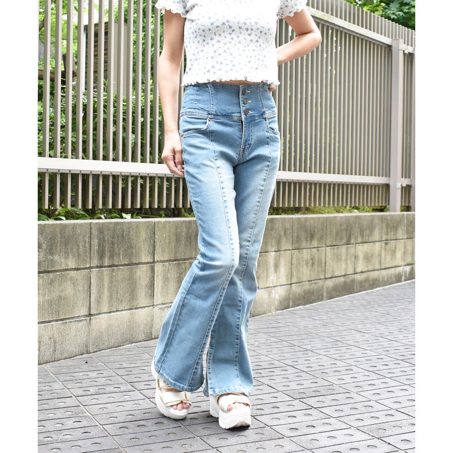 ハイウエストなのでクロップド丈のトップスとも相性ばっちりです!