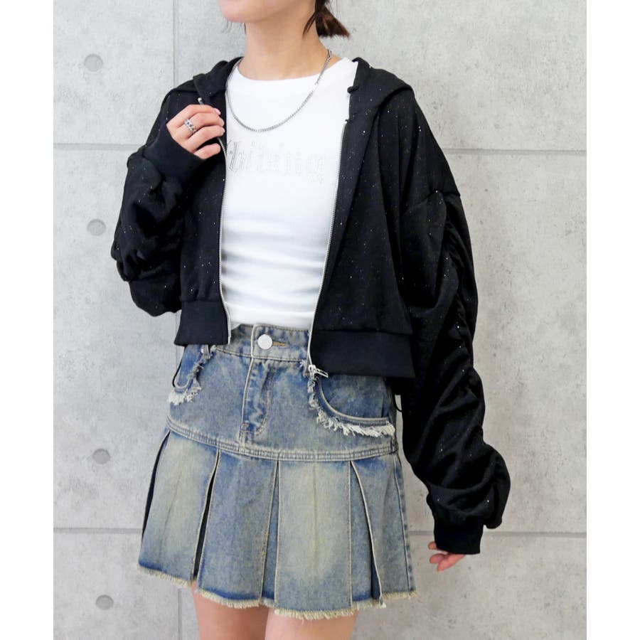 ラメショートパーカー