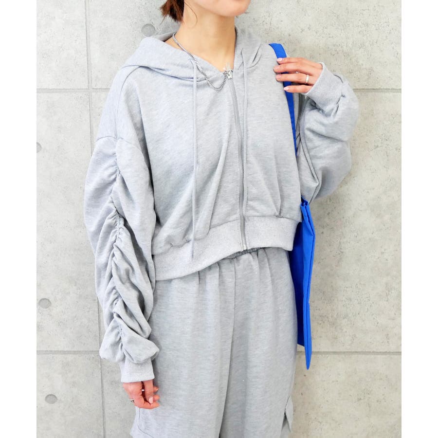 カジュアルなスウェットにラメをプラスした、スポーティーなのに華やかなショートパーカー。