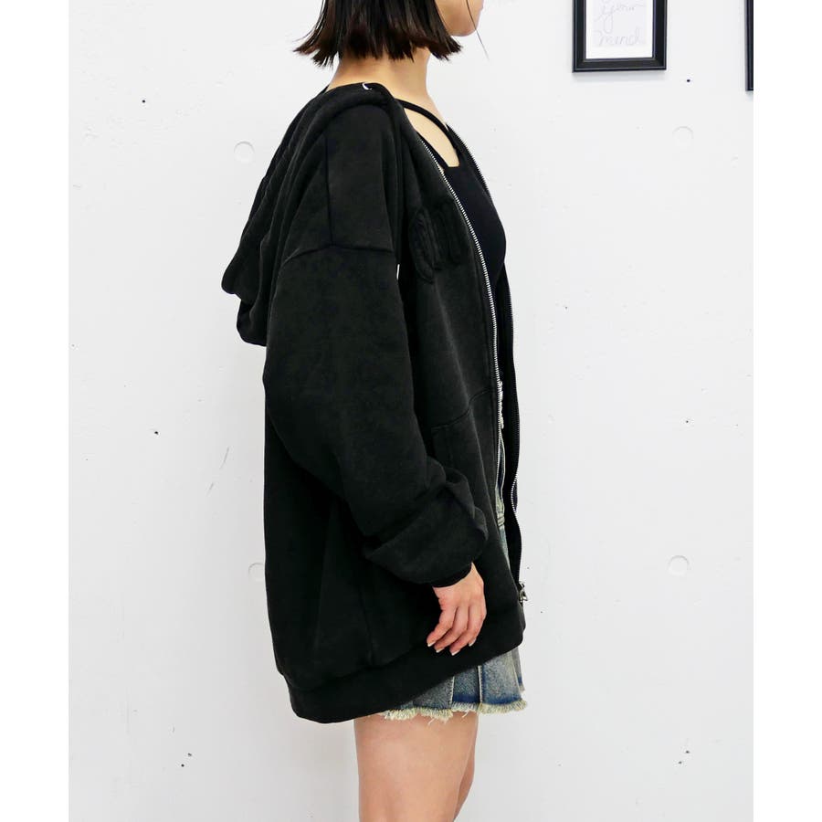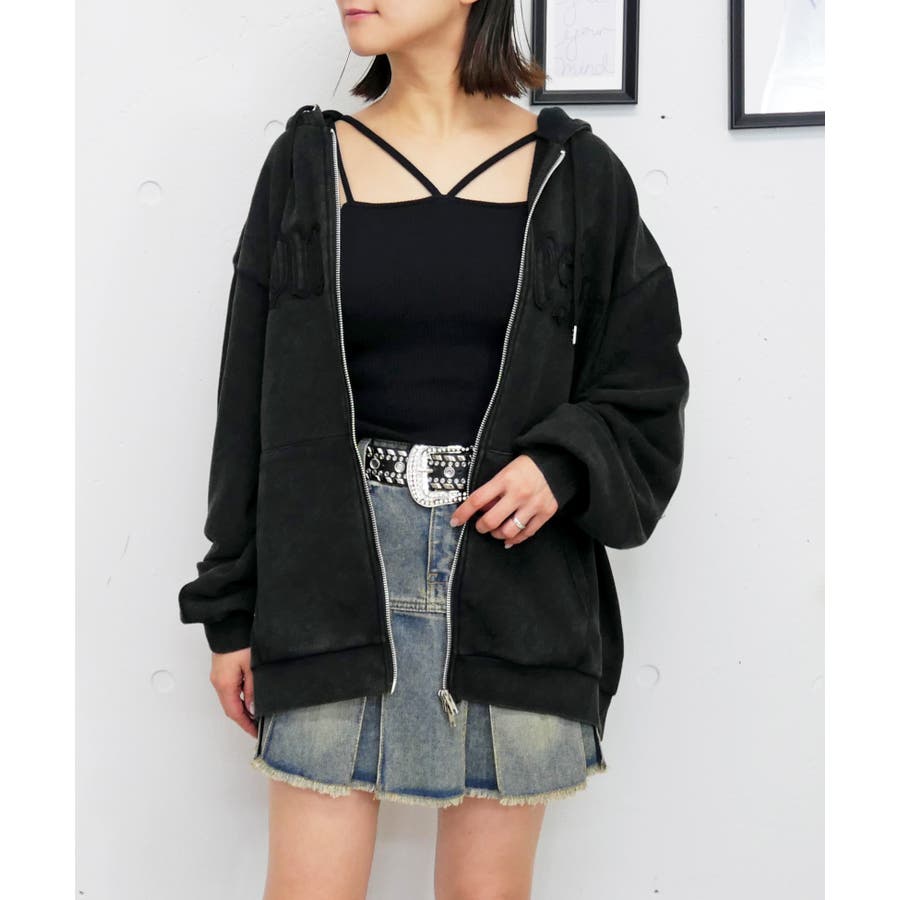 全体にハードなケミカル加工が施されている分、ゆったりとしたサイズ感が絶妙な「抜け感」を作ります。