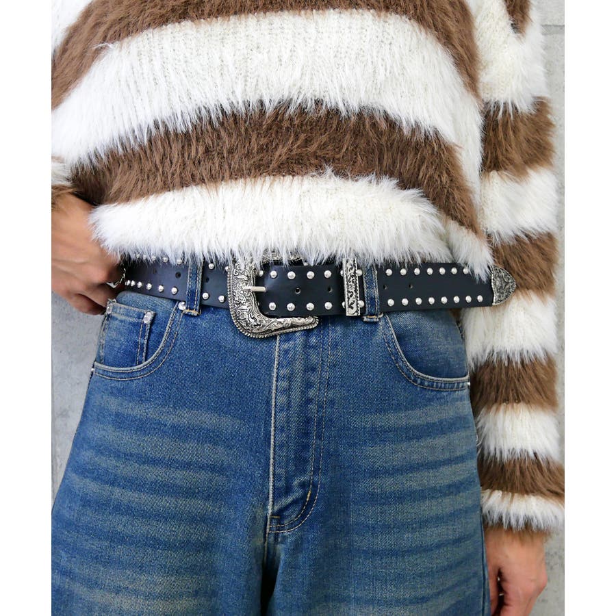 ベルト全体に施されたスタッズがロックやウェスタンムードを加え、デニムやワンピースに合わせるだけでトレンド感のある辛口スタイルが完成します。