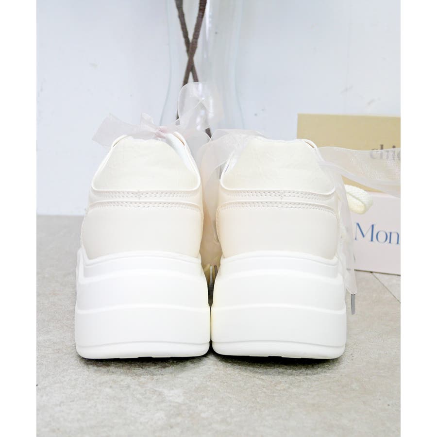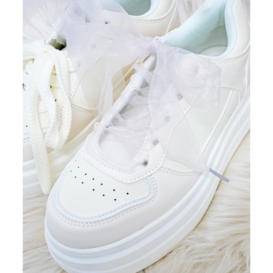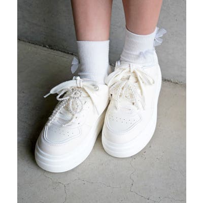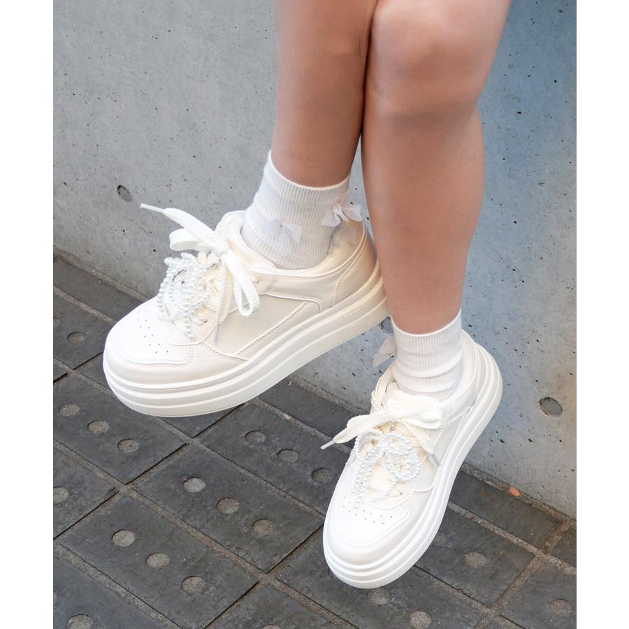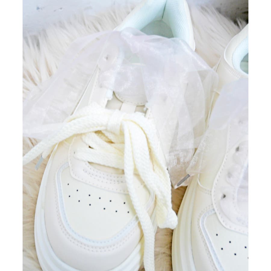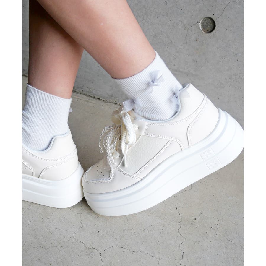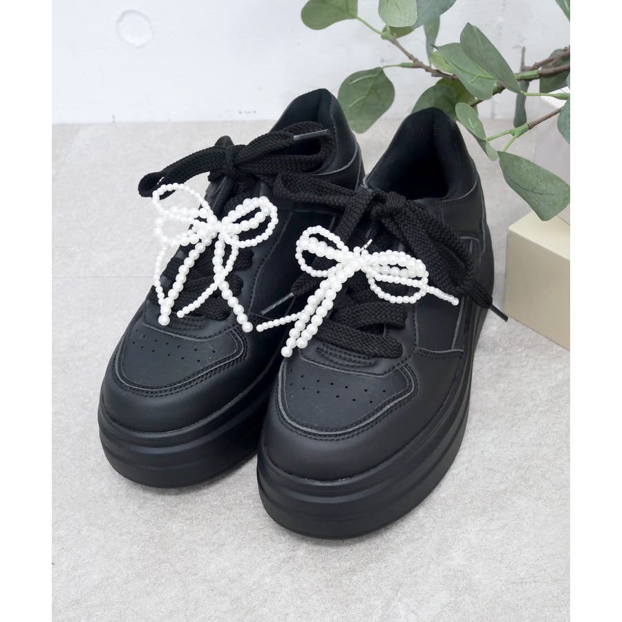 パールリボンのチャームとオーガンジーリボンの靴ひもが付属しており、気分やコーディネートに合わせて自由にカスタムして楽しめます。
