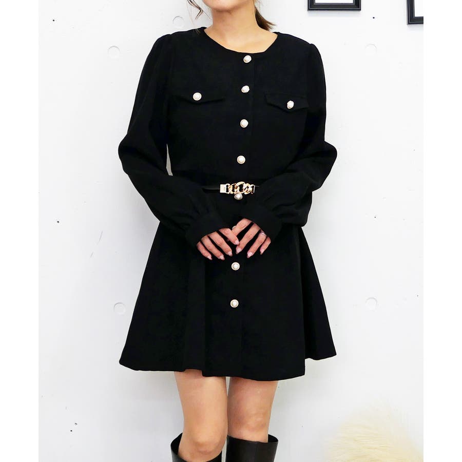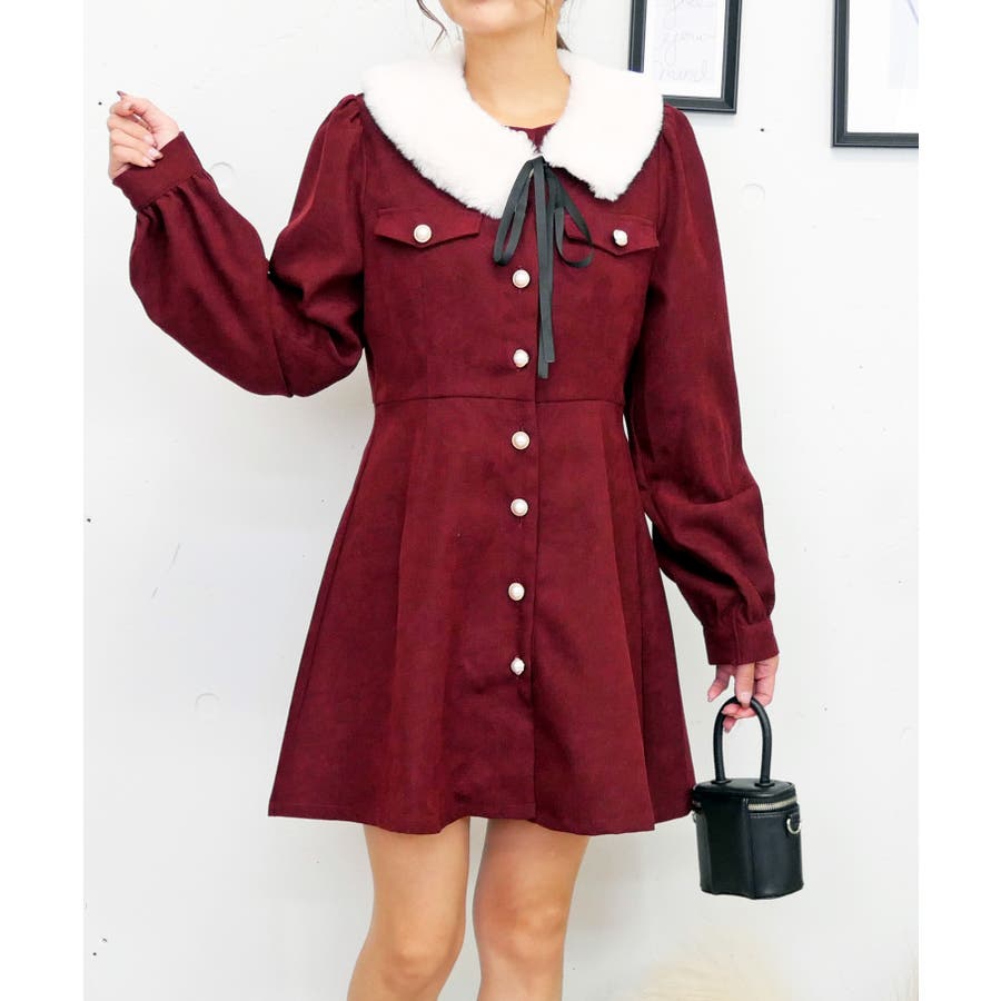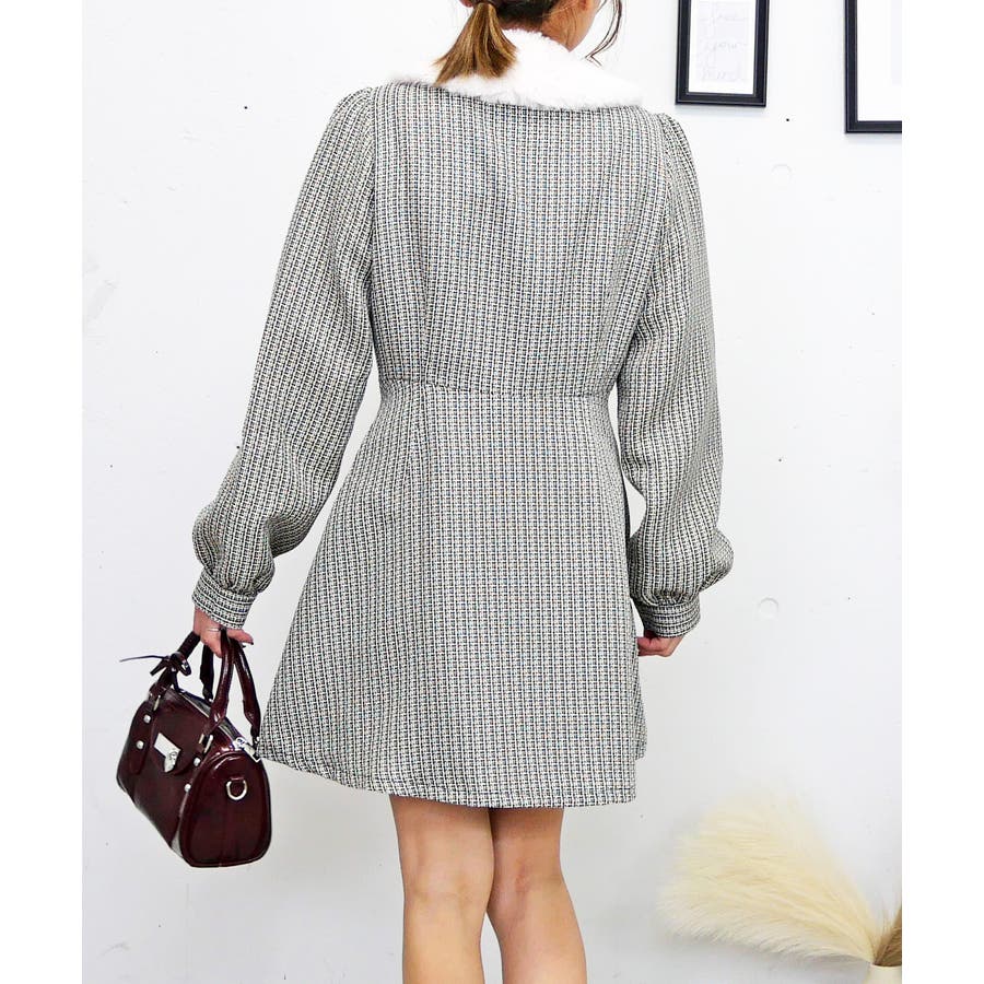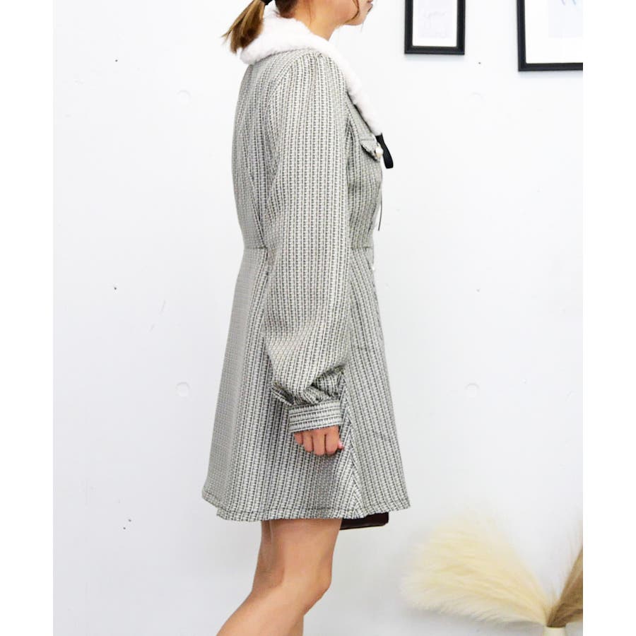 上品でクラシカルな素材感が秋冬らしい温かみを演出するミニワンピース。