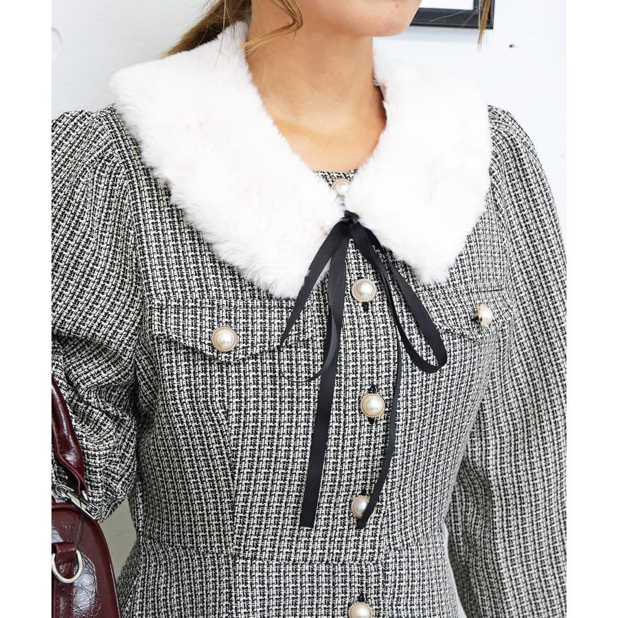 取り外し可能なファーティペット付きで、華やかさと防寒性を両立。