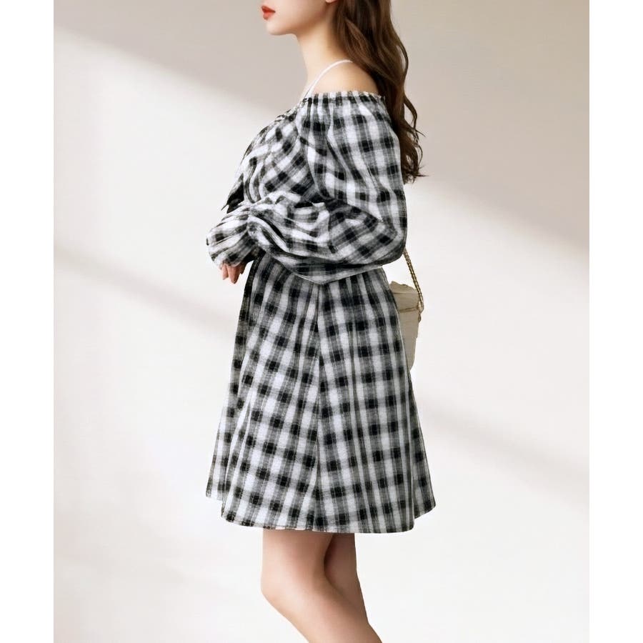 程よい肌見せが叶うオフショルデザインに、ウエスト切替でメリハリのあるシルエットでスタイルアップ効果も抜群です。