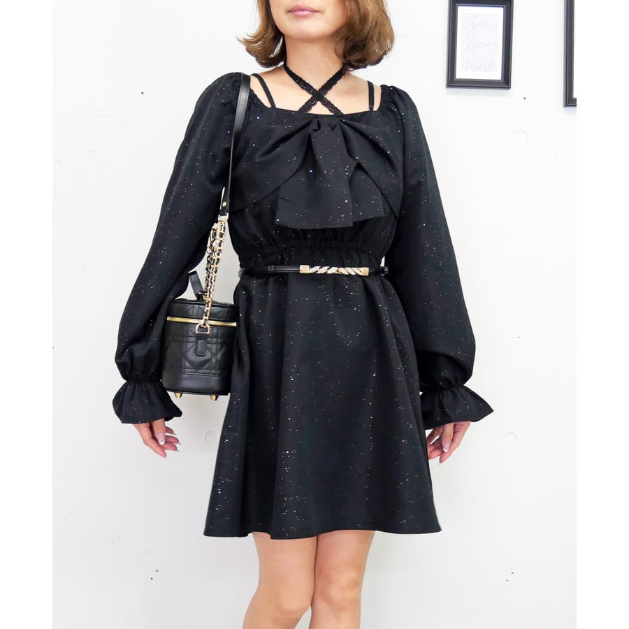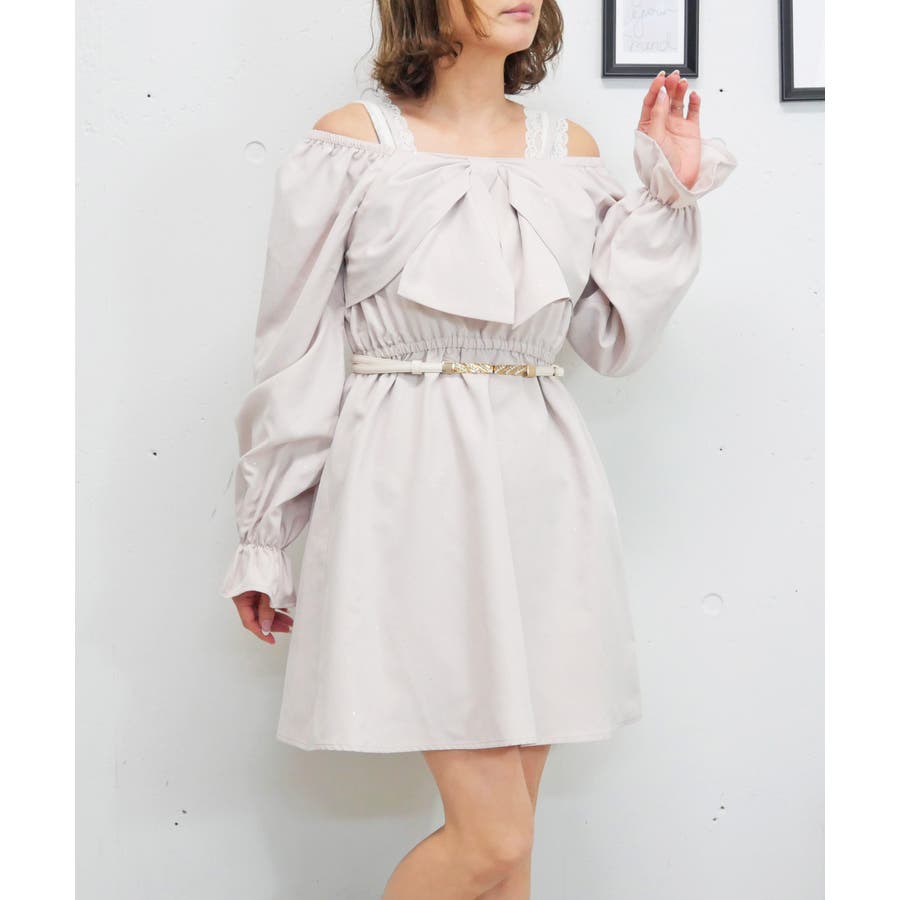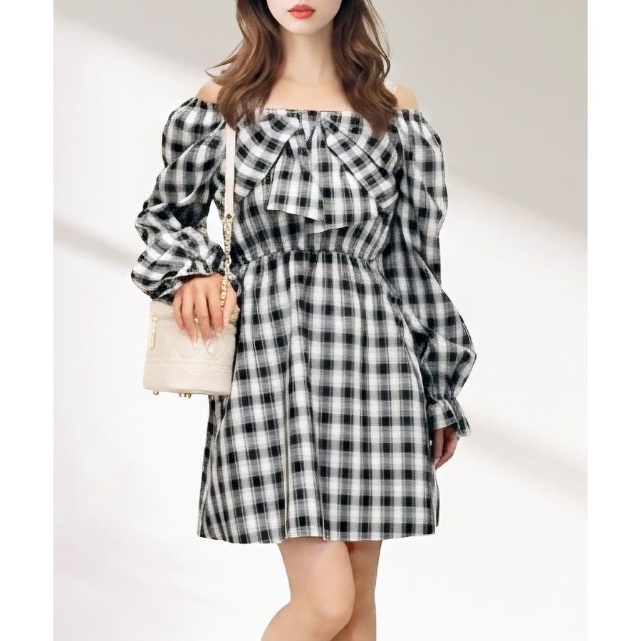 フロントに大きくあしらわれたリボンが、顔周りを華やかに演出するワンピース。