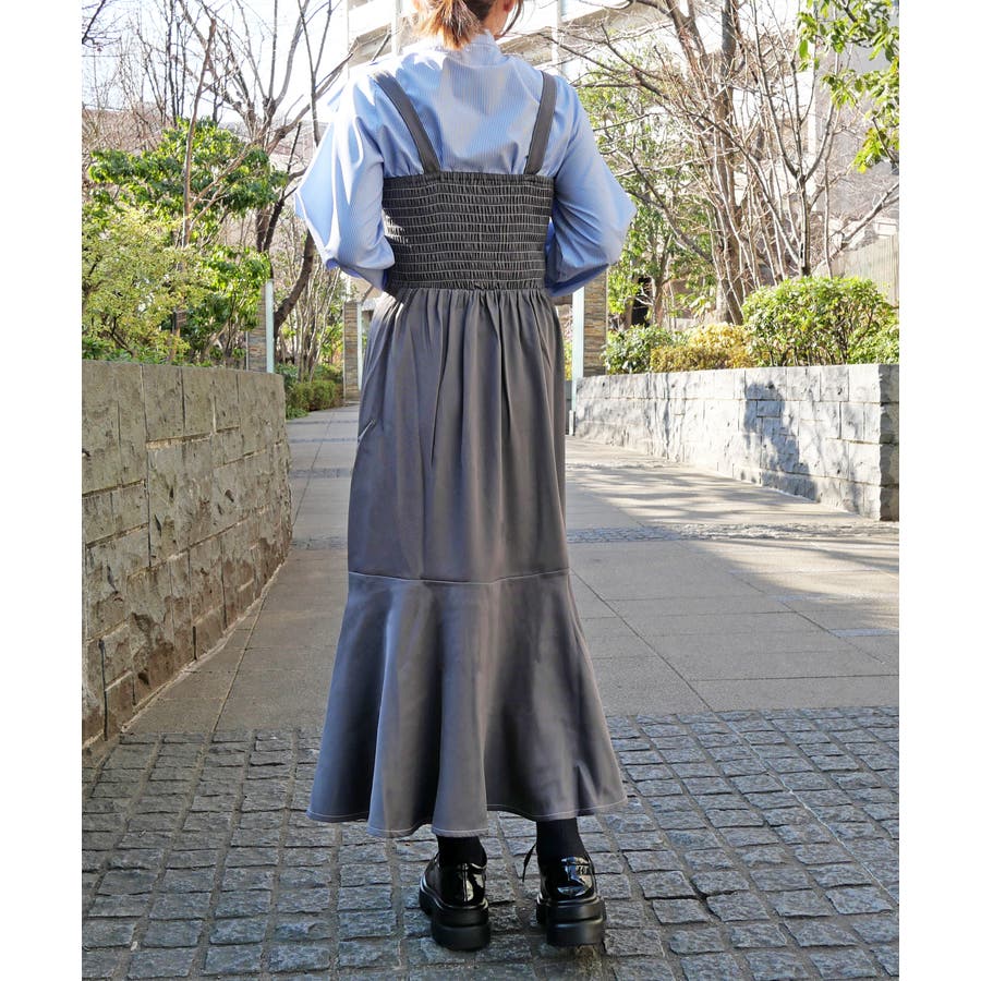 マーメイドシルエットにより、カジュアルなジャンスカの中にエレガントでレディな印象をプラスしてくれます。