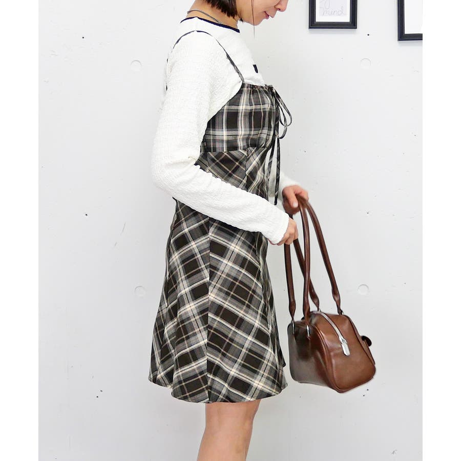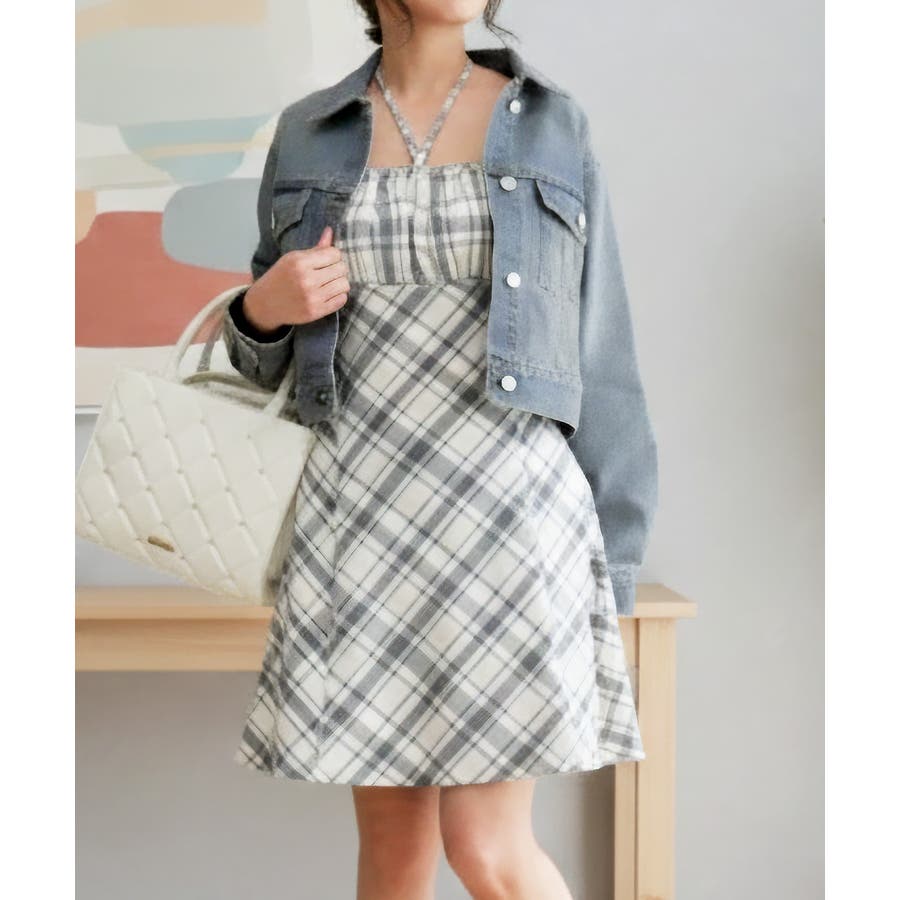 落ち着いたトーンのチェック柄なので、甘くなりすぎず大人可愛い印象で着こなせます。