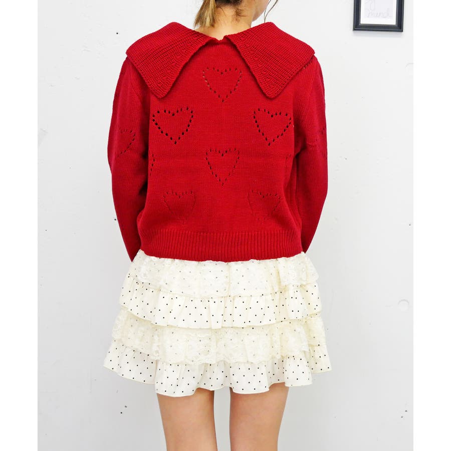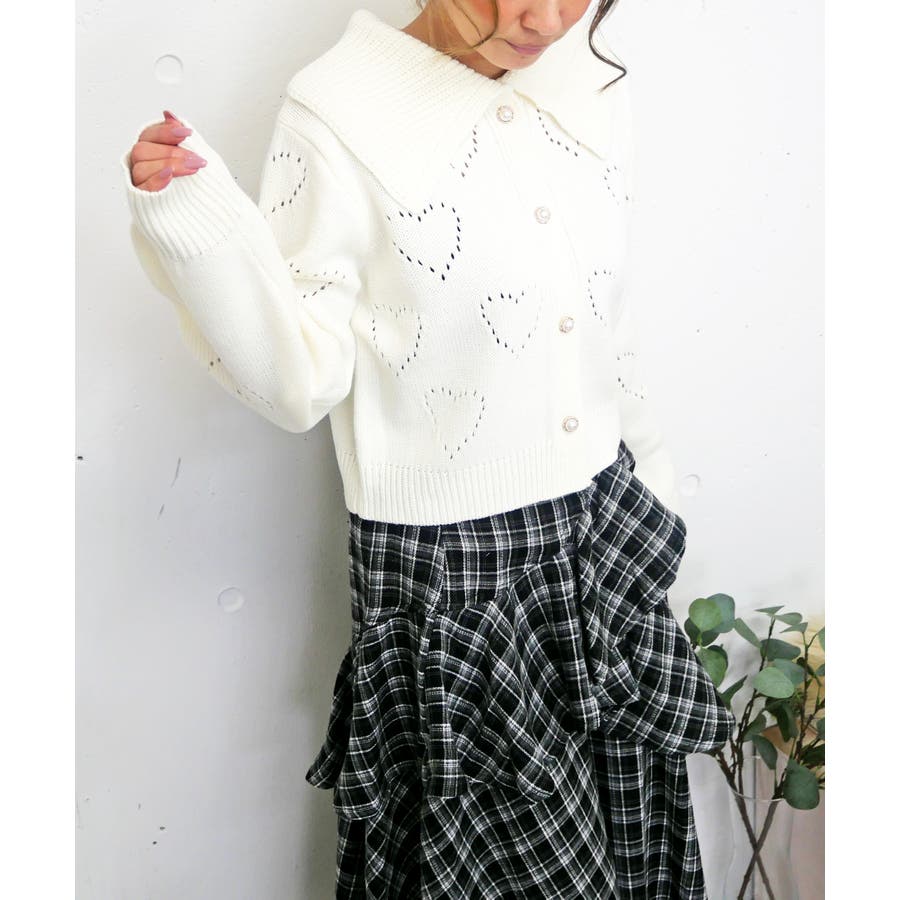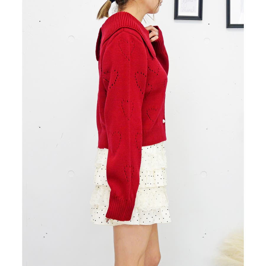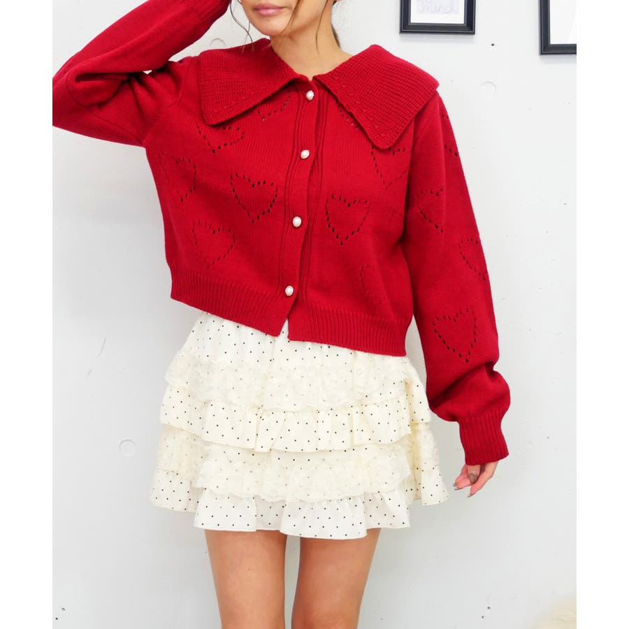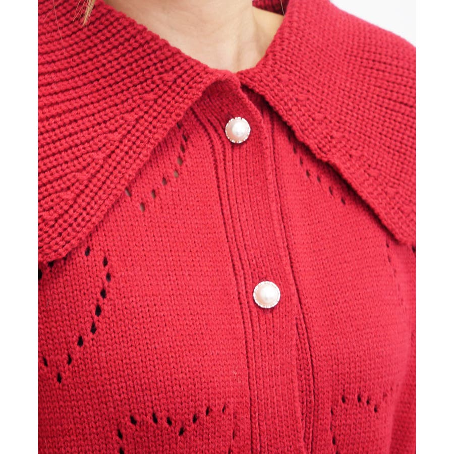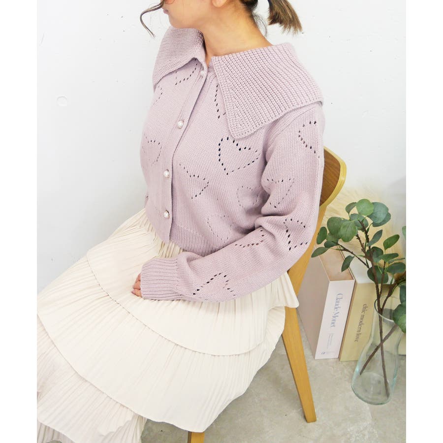 存在感のあるビッグカラーが顔周りをぱっと明るく見せてくれる、レトロガーリーなニットカーディガン。