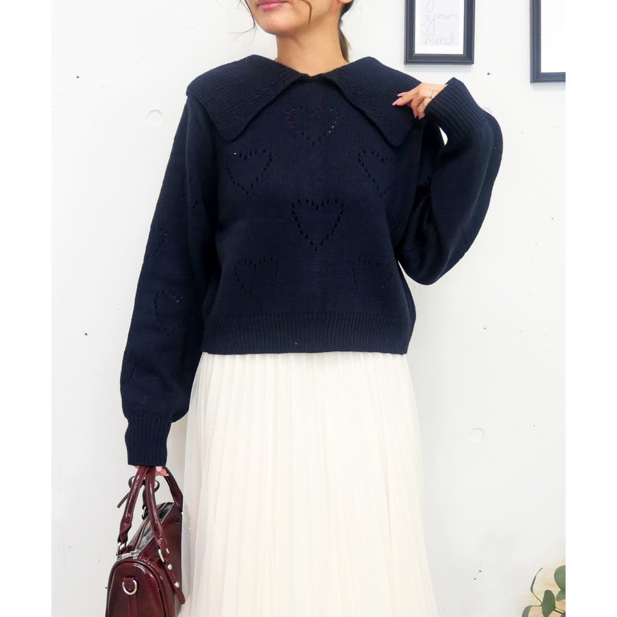 さりげなく施されたハートの透かし編みが、甘さをプラスしつつも主張しすぎず、大人可愛い印象に仕上げてくれます。