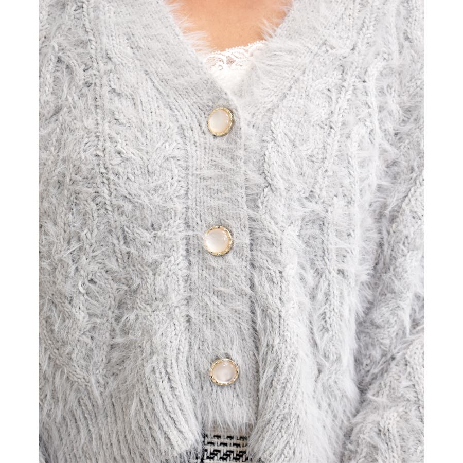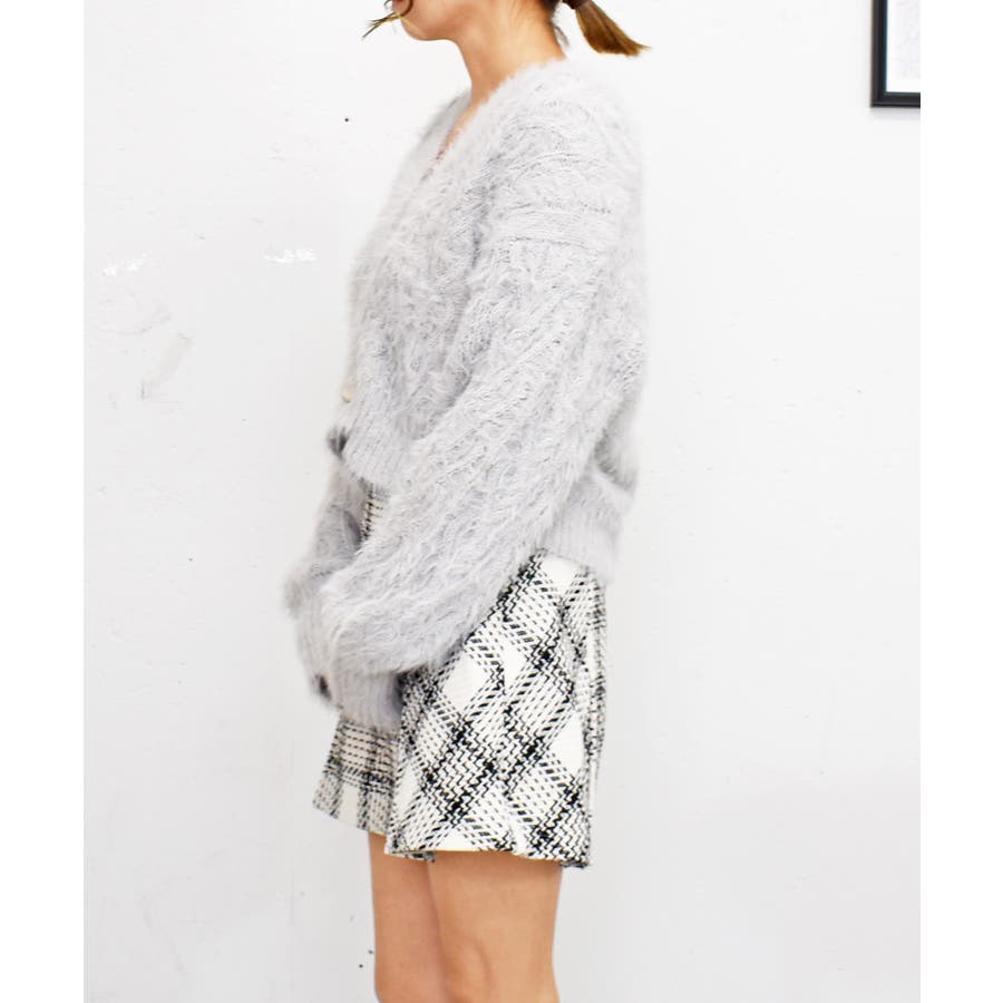 ふわふわのシャギーとケーブル柄が合わさり、見た目にも触り心地にもリッチな印象を与えます。