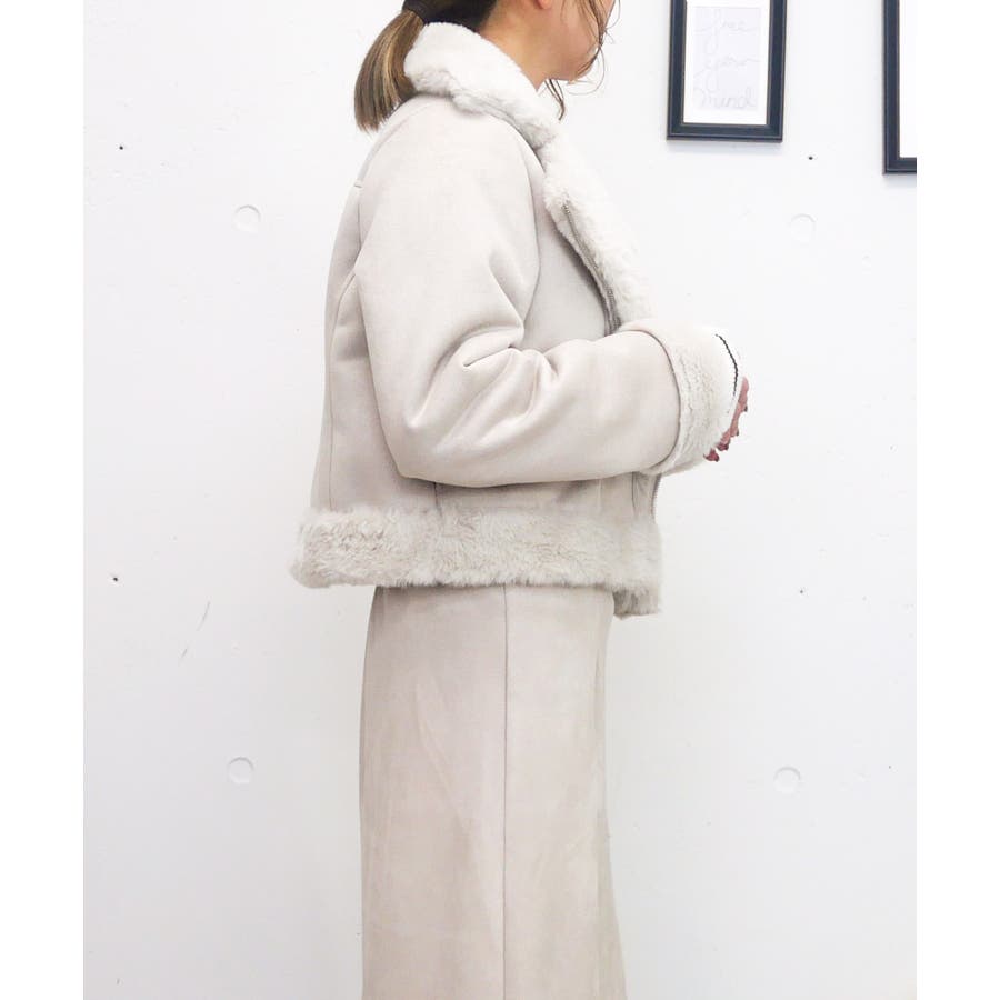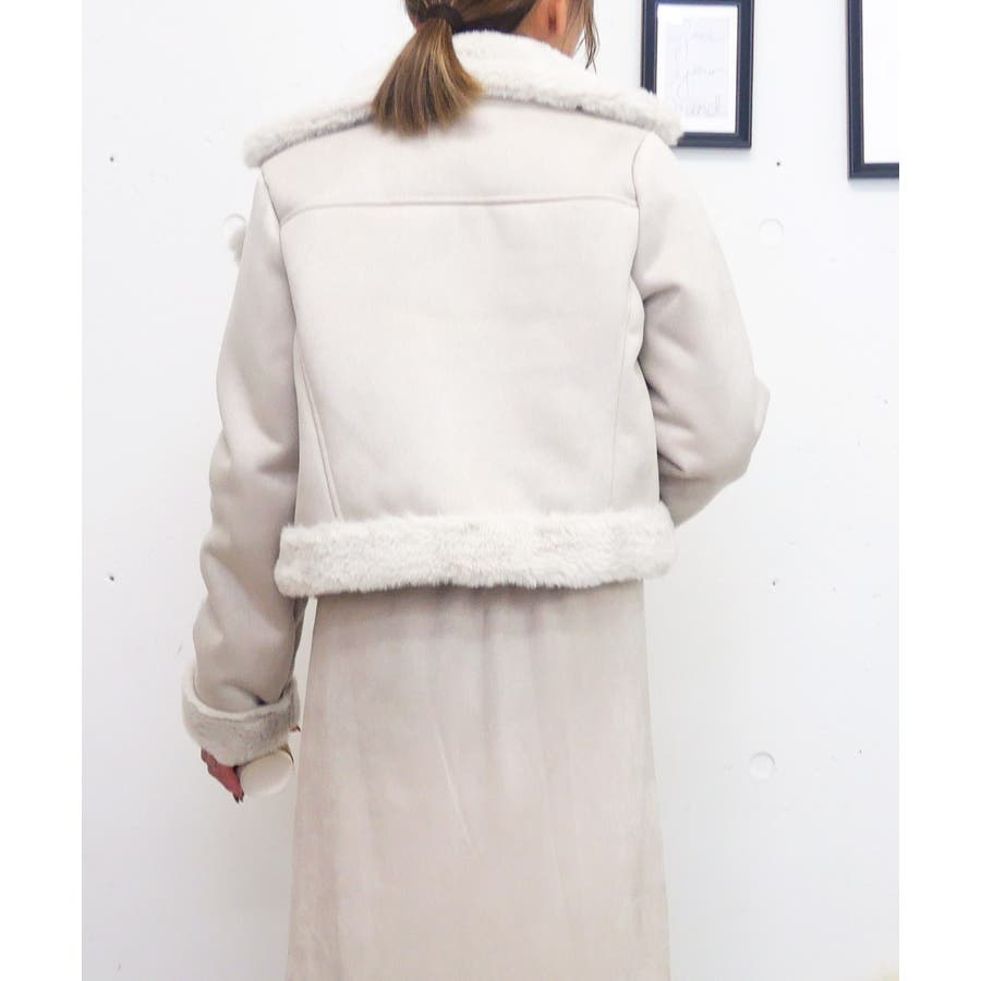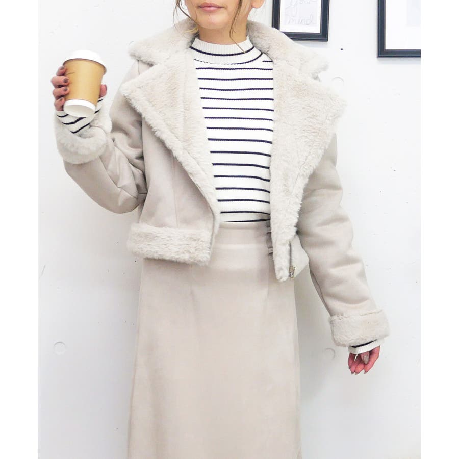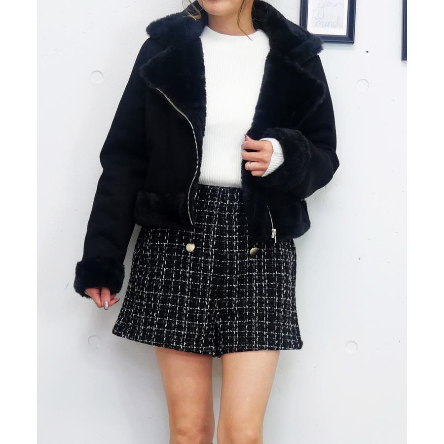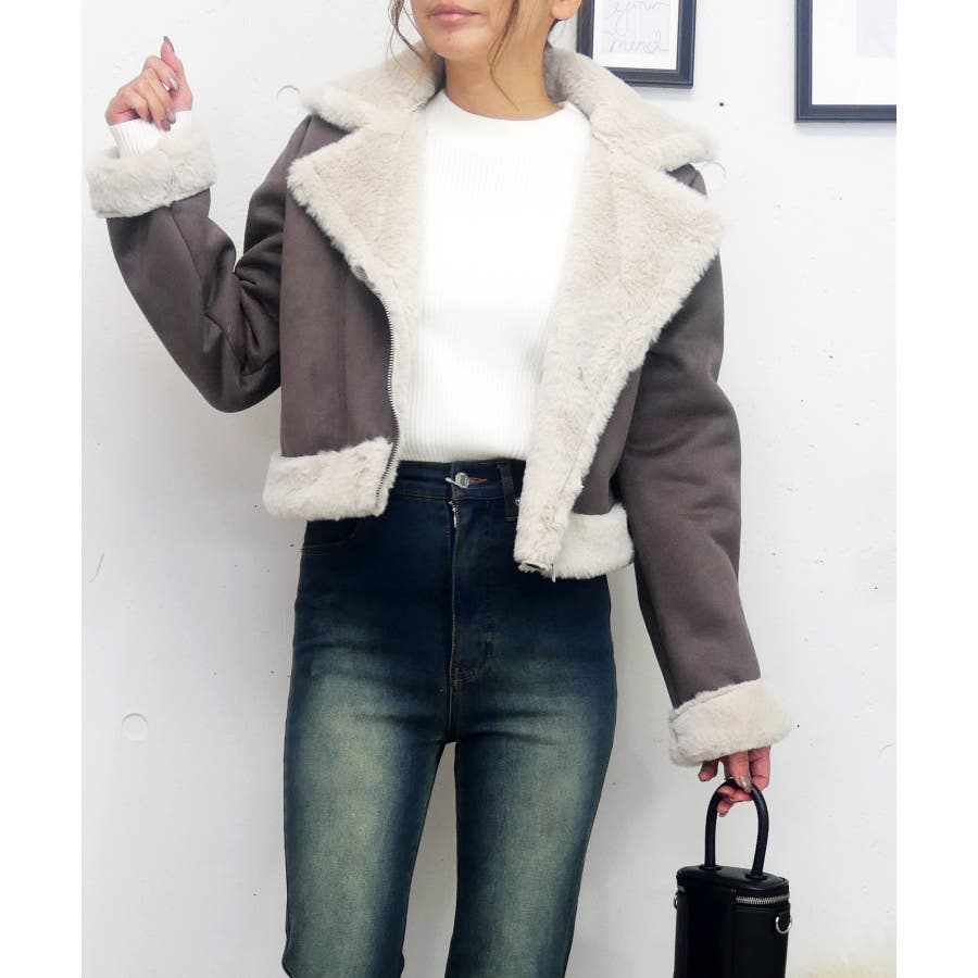裏地はふわふわのフェイクファーで暖かく、ショート丈だから重たく見えずスタイルアップも◎