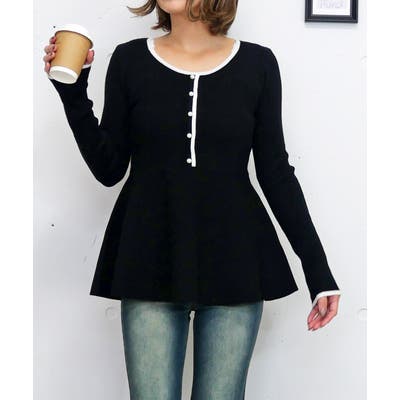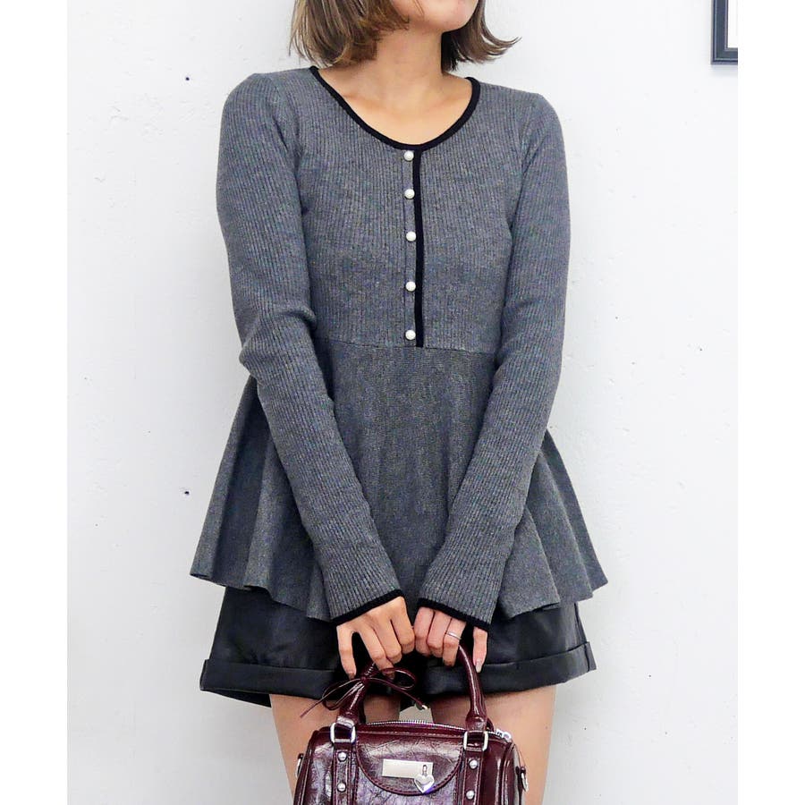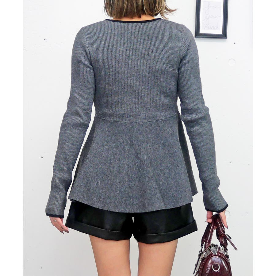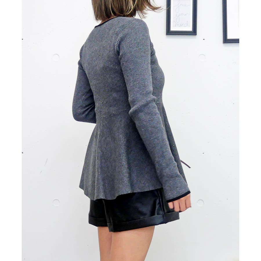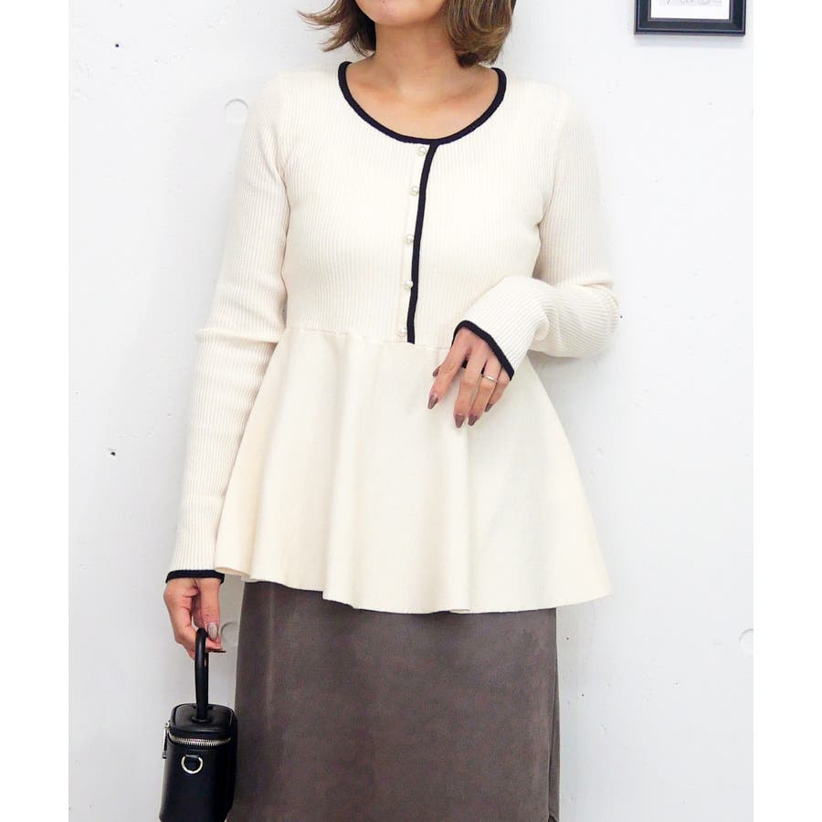 ウエストから裾にかけて広がるペプラムシルエットが、気になる腰周りをカバーしつつ、ウエストを細く見せてくれる一枚。