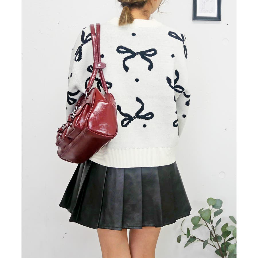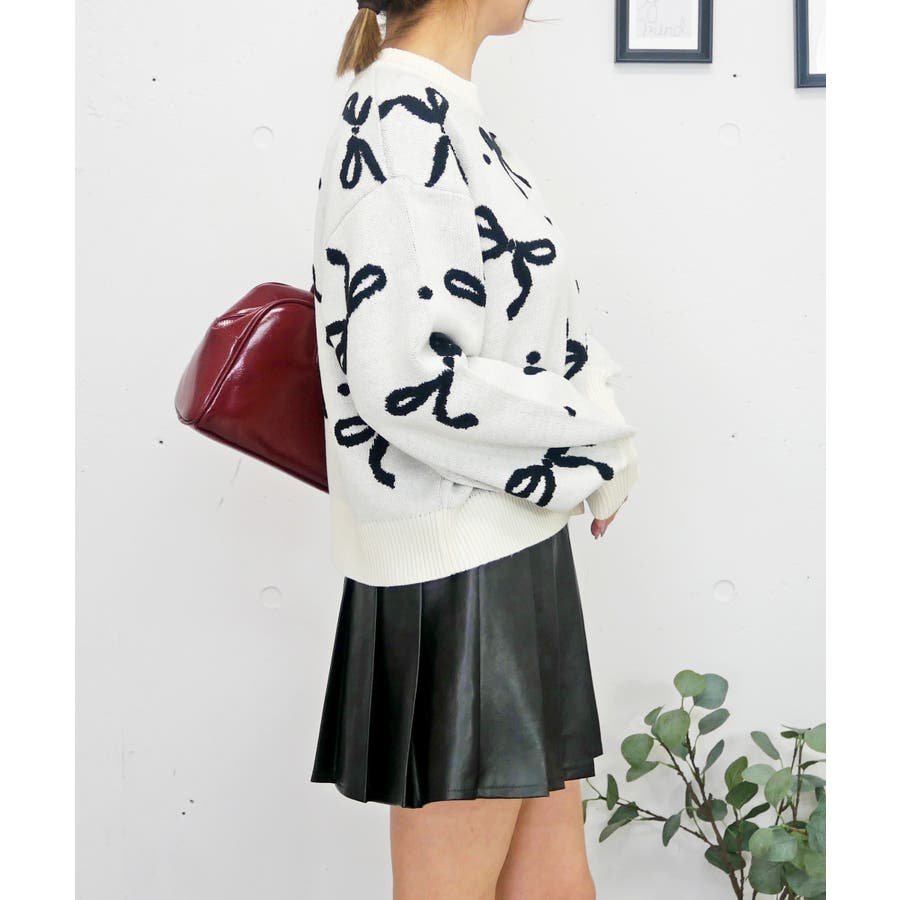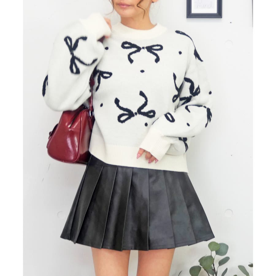 全体に散りばめられたリボンモチーフが、冬から春先にかけてのコーディネートをぱっと華やかに演出。