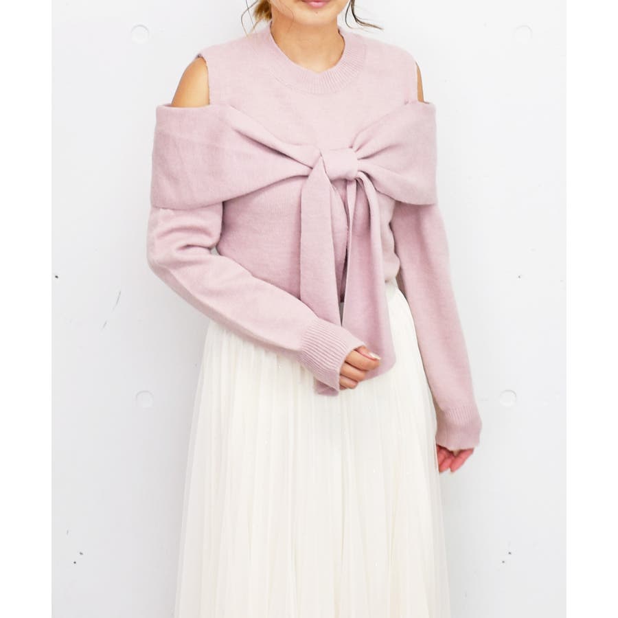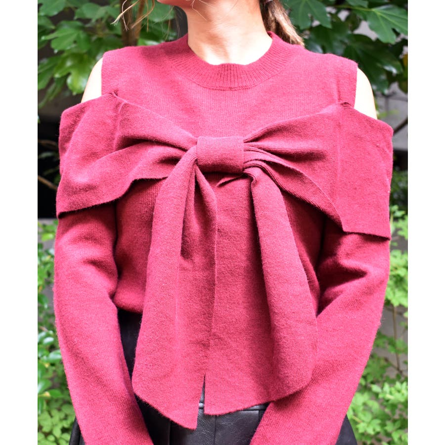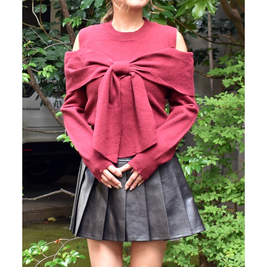 フロントにあしらわれた立体的なリボンが、コーディネートの主役になる華やかさを演出。