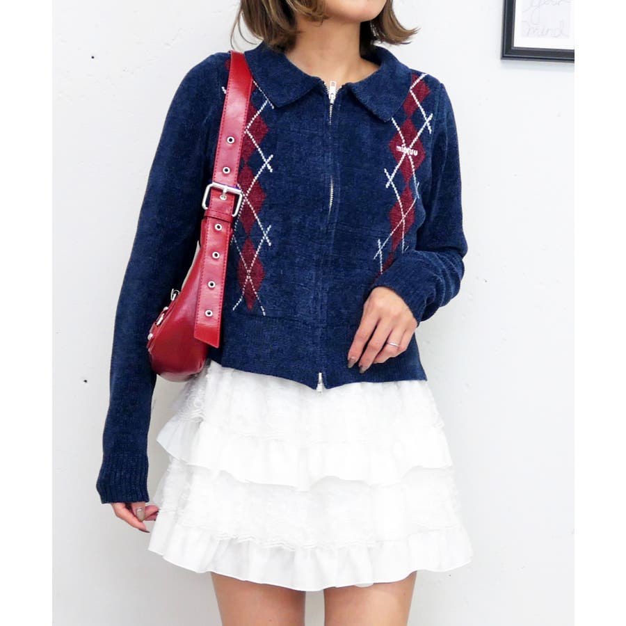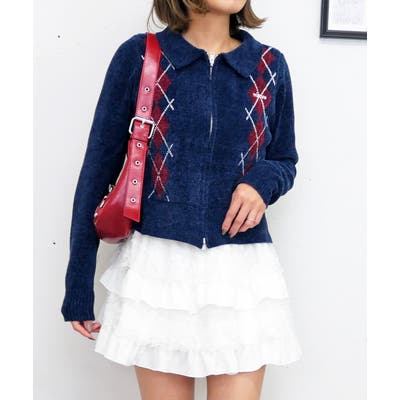 アーガイルジップニット