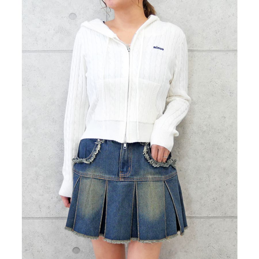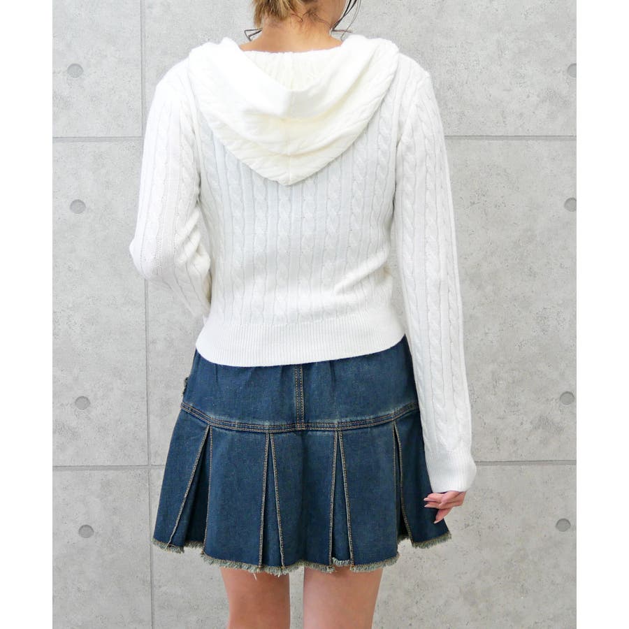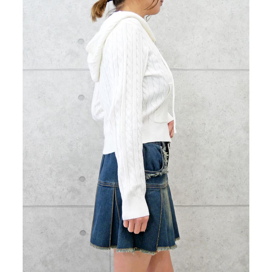 ケーブルフードニット