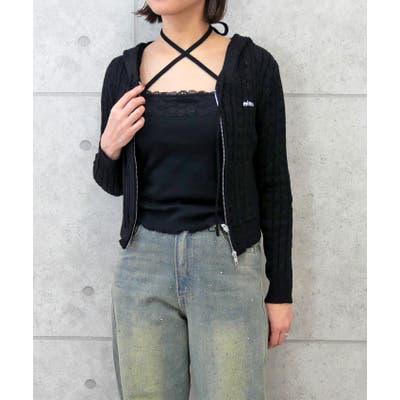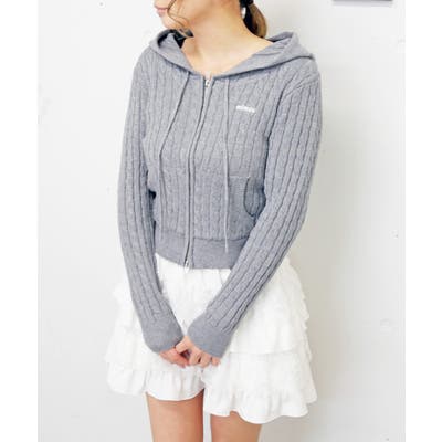 カジュアルなフードデザインに、繊細なラメを織り込むことで、フェミニンさと上品さをプラスしたケーブルニット。