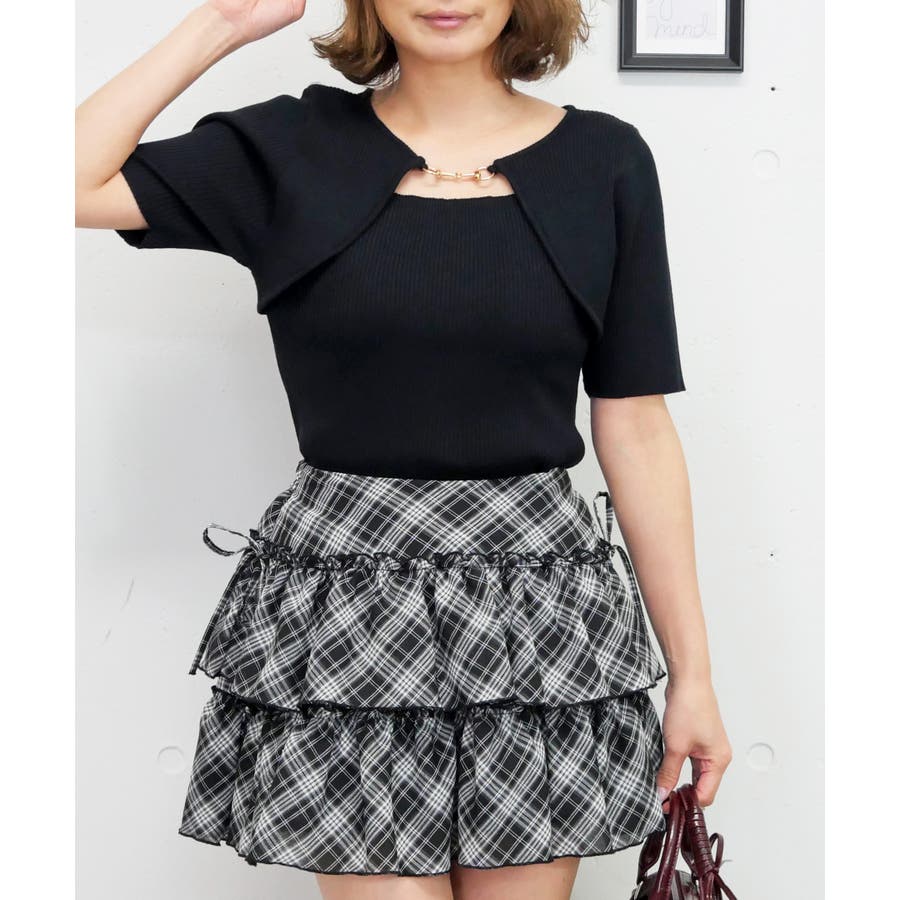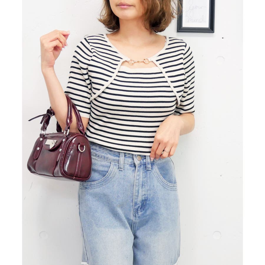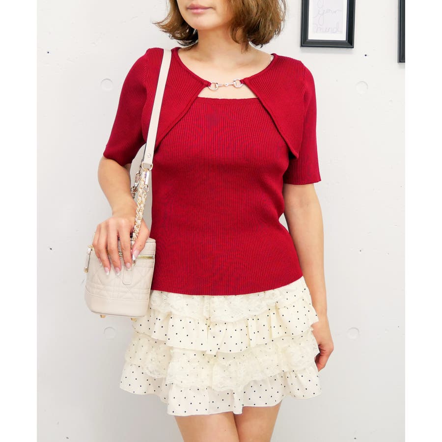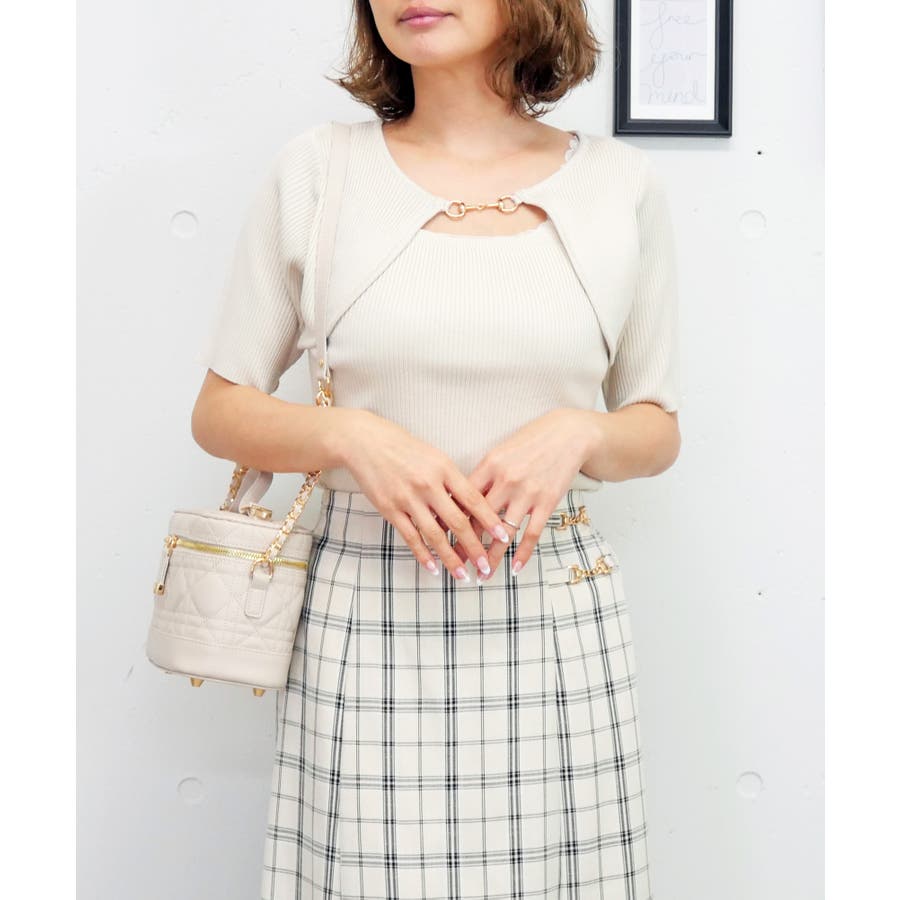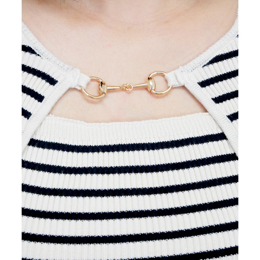 フロントにあしらわれたゴールドのビットパーツが、お顔周りを華やかに、そして上品に演出するニット。