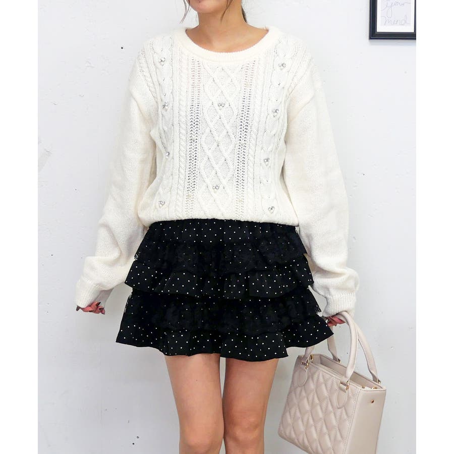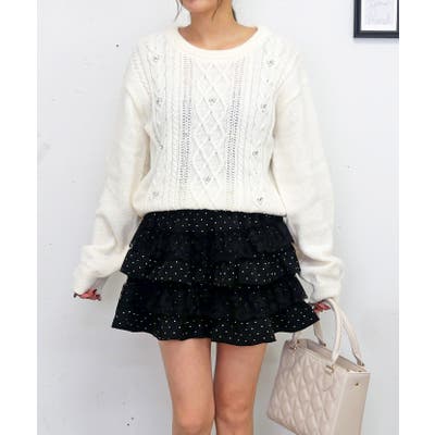 ビジュケーブルニット