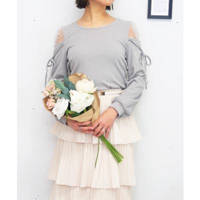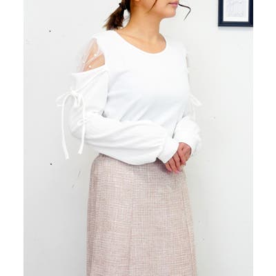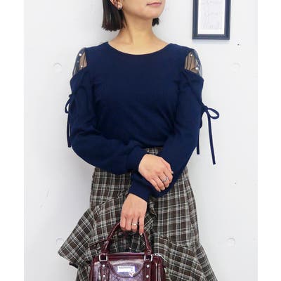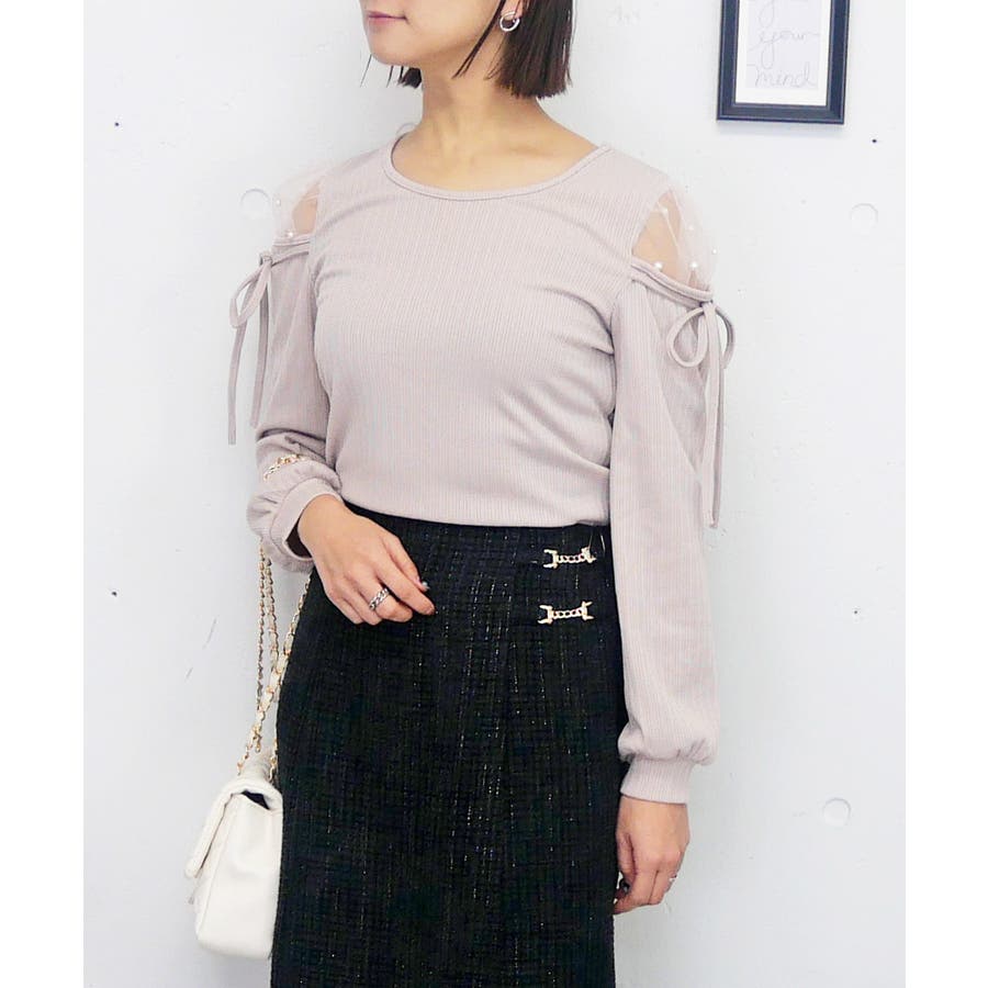 肩の部分が透けている人気のデザインで、重くなりがちな春のコーディネートに程よい抜け感と女性らしさをプラス。