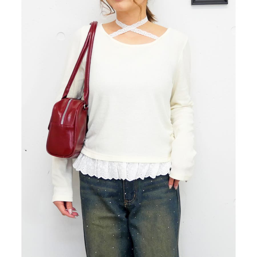 裾のレース部分が軽やかなアクセントになり、アウトして着るだけで、計算されたレイヤードスタイルが完成。