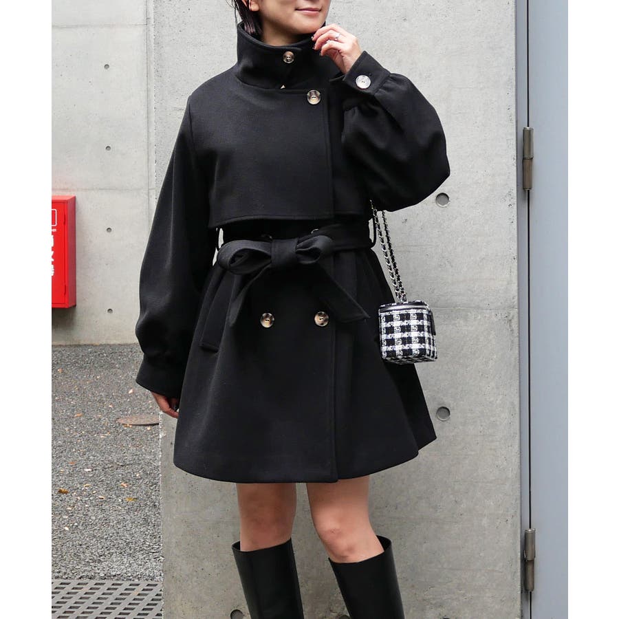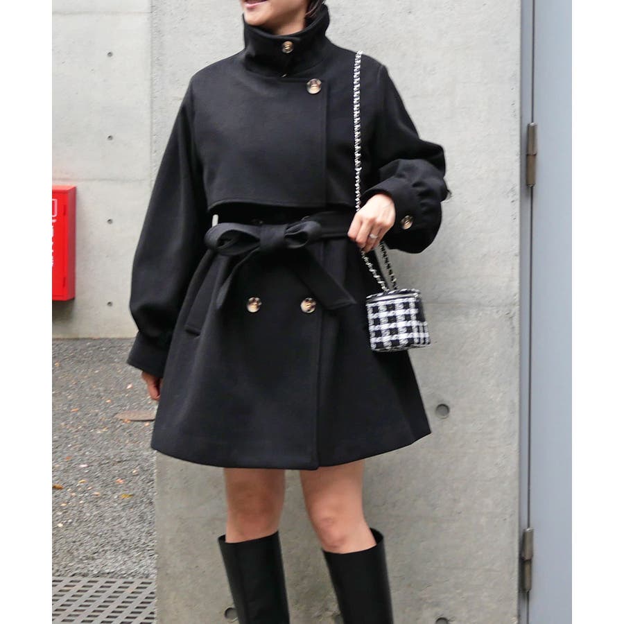 襟元がスタンドカラーにもなる2WAY仕様で、きちんと感のあるトレンチ風と、防寒性も兼ね備えたモードな立ち襟スタイル、2つの表情を楽しめます。