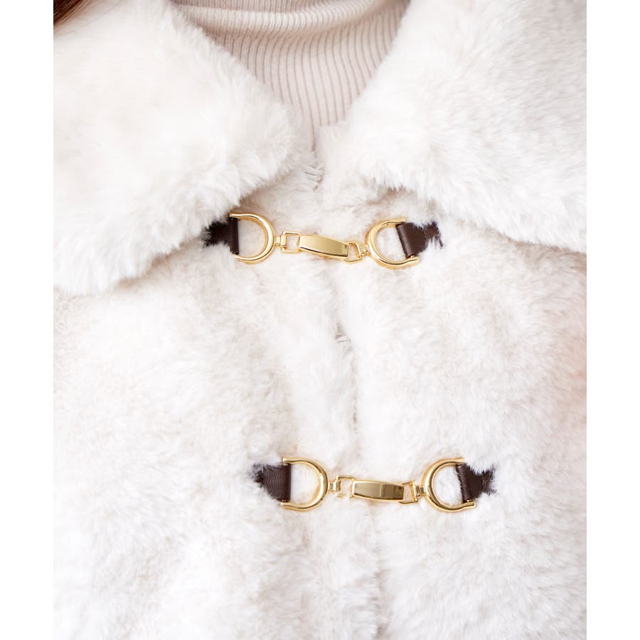 フロントのビットデザインが上品なアクセントとなり、華やかさと高見えを叶えるファーコート。