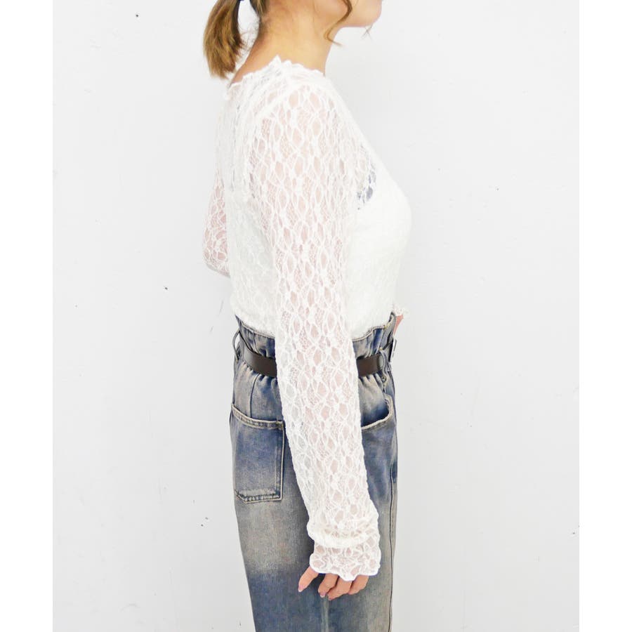 甘すぎないレース柄で、大人っぽくカジュアルに楽しめる万能トップスです。