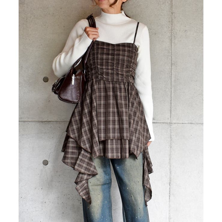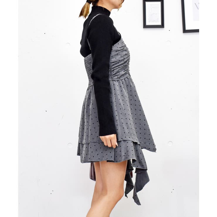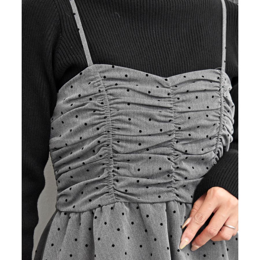 胸元のシャーリングが立体感を出しつつウエストラインを引き締め、自然な細見え効果を叶えます。