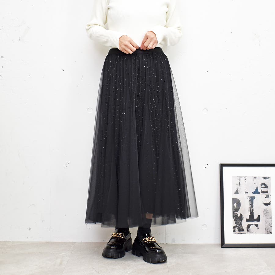 ホリデーシーズンにぴったりの上品で華やかなチュールスカート。