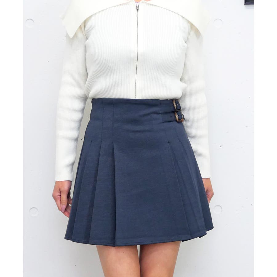 サイドに施されたダブルベルトとプリーツのデザインが、トラッドで上品な雰囲気を演出。
