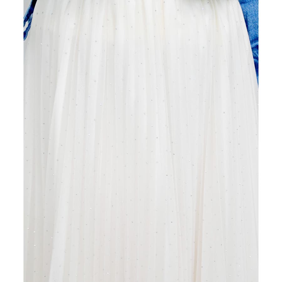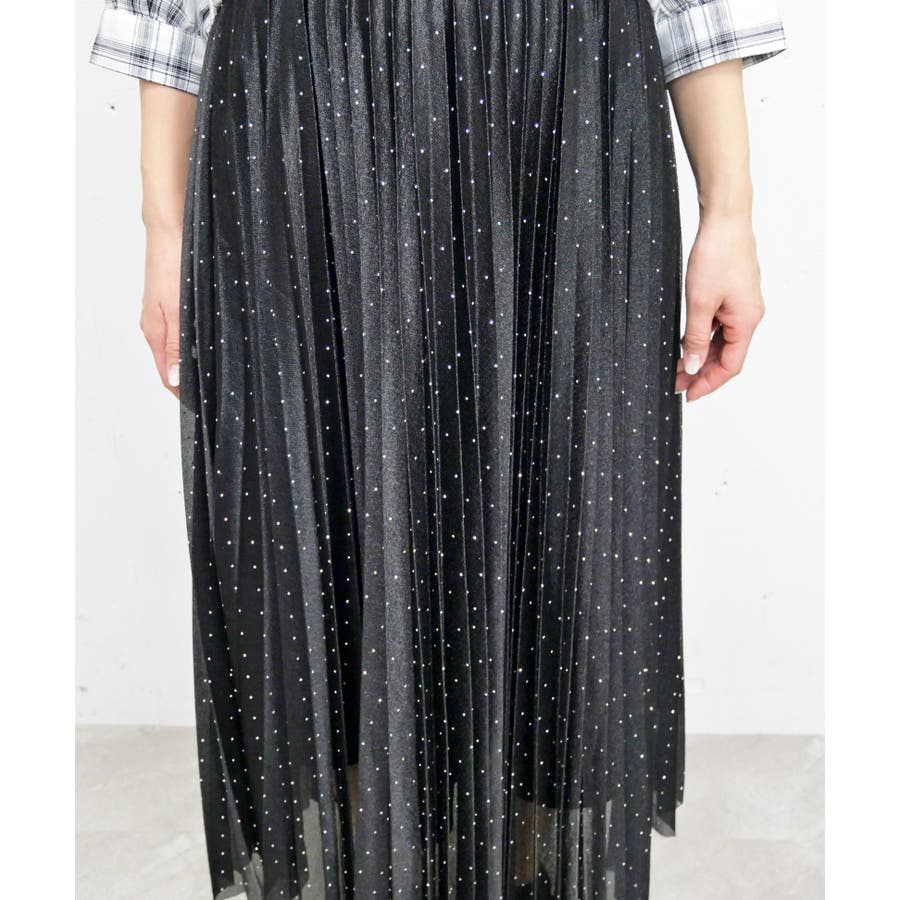 生地全体にあしらわれたラインストーンが、動くたびに上品に煌めく華やかな一枚。