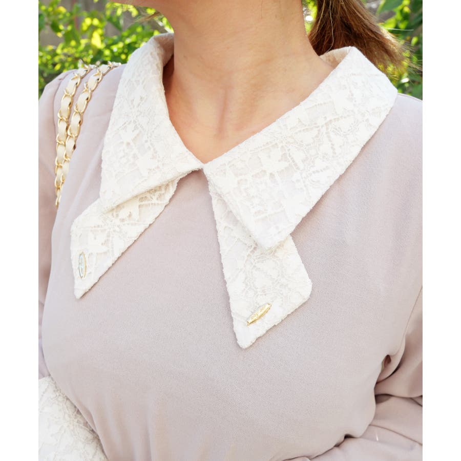 顔まわりを華やかに見せるレースの襟が上品でありながら可愛すぎず、大人の女性でも気負わず着こなせます。