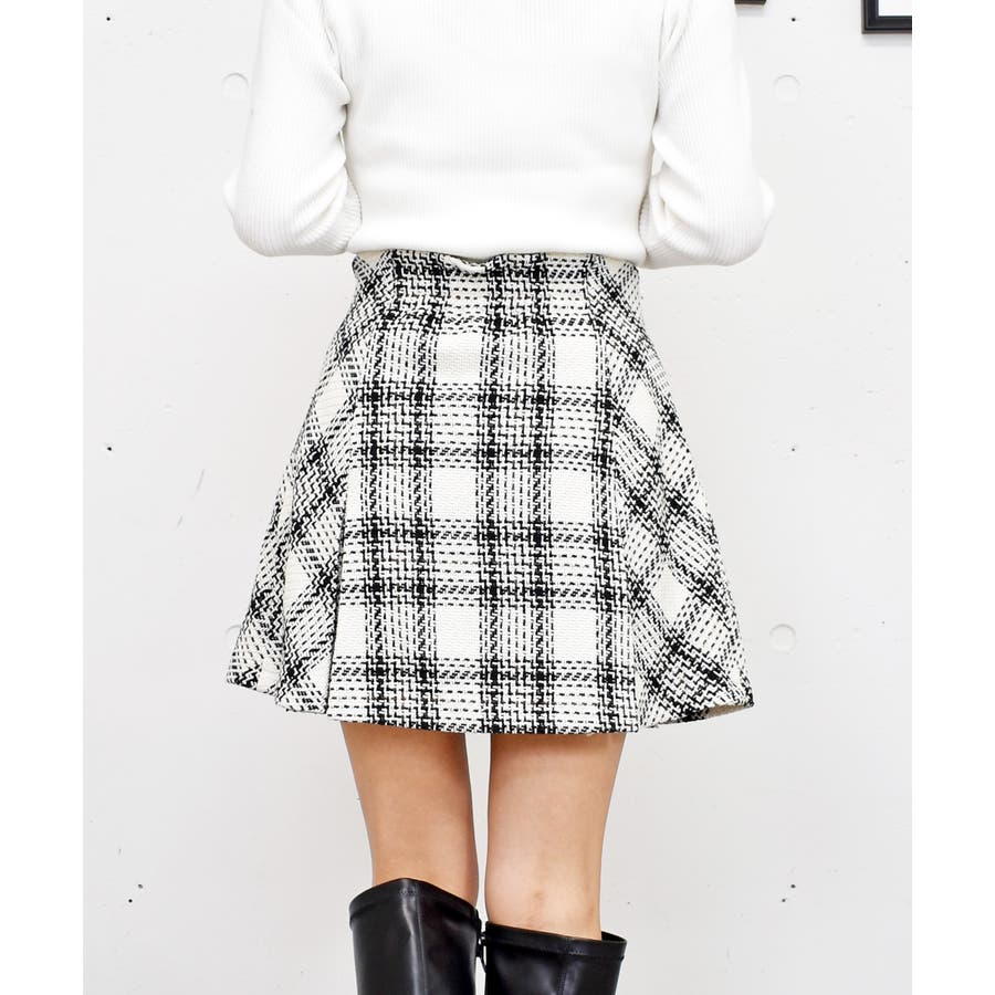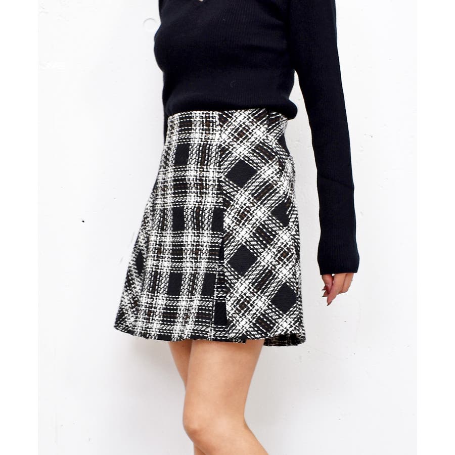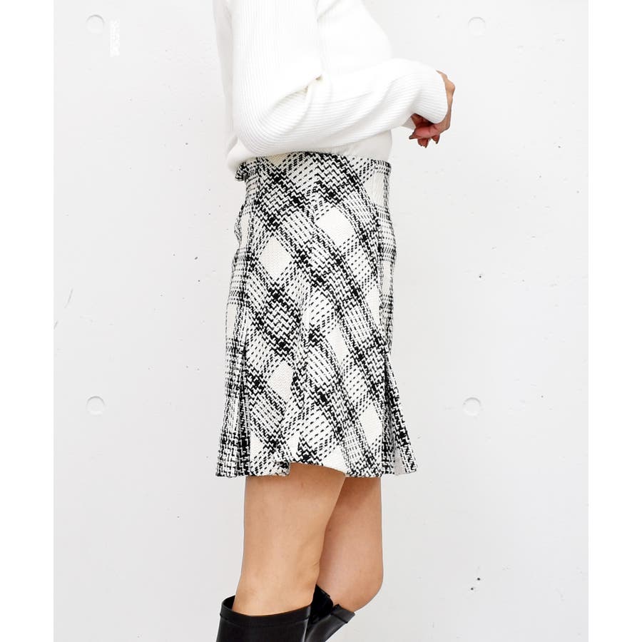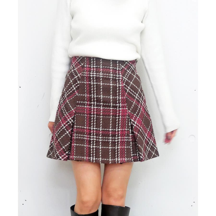 秋冬らしいツイードチェック柄が上品で温かみのある印象を与え、コーディネートに季節感をプラスします。