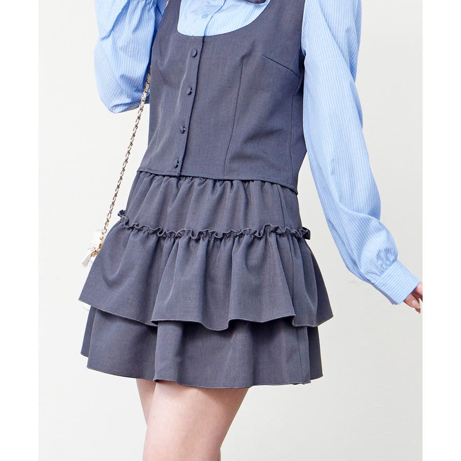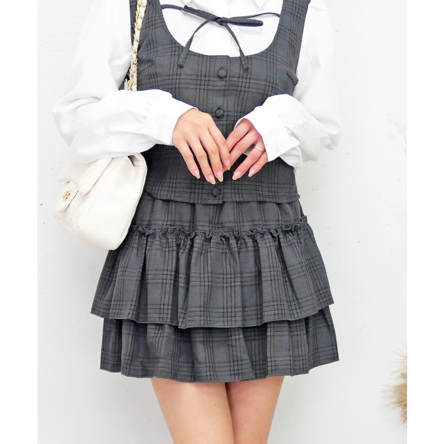 贅沢に重ねたティアードフリルが、動くたびに可愛らしく揺れる一枚。